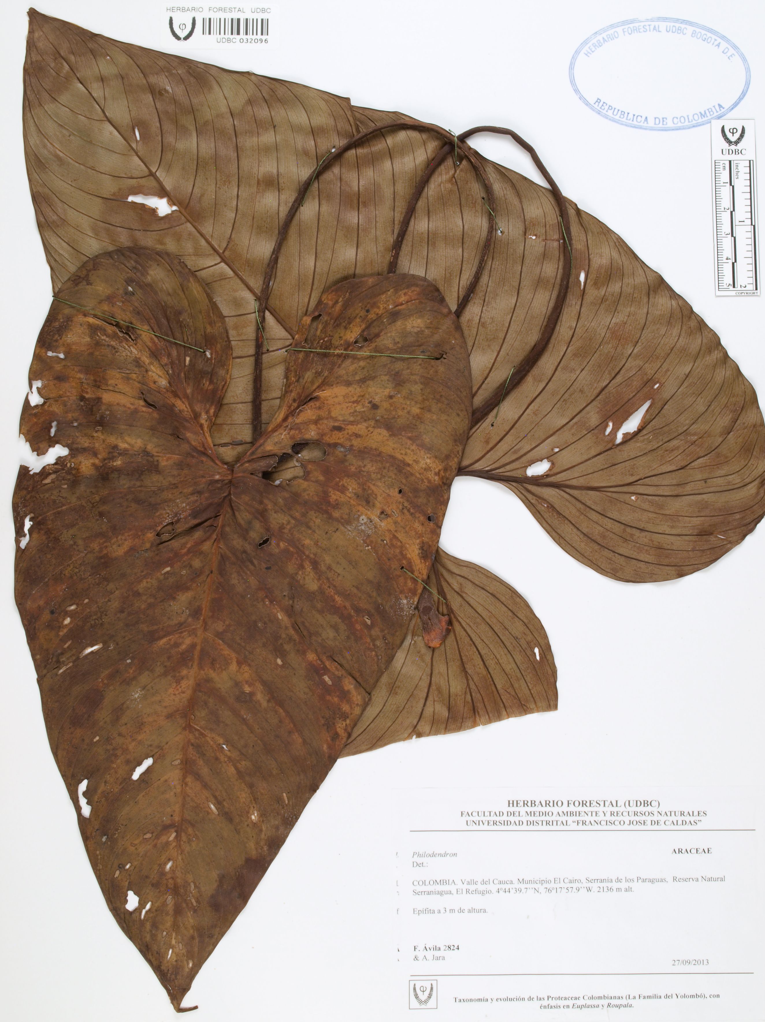 Fotografía del ejemplar Ávila, F. 2824, determinado como Philodendron sp.