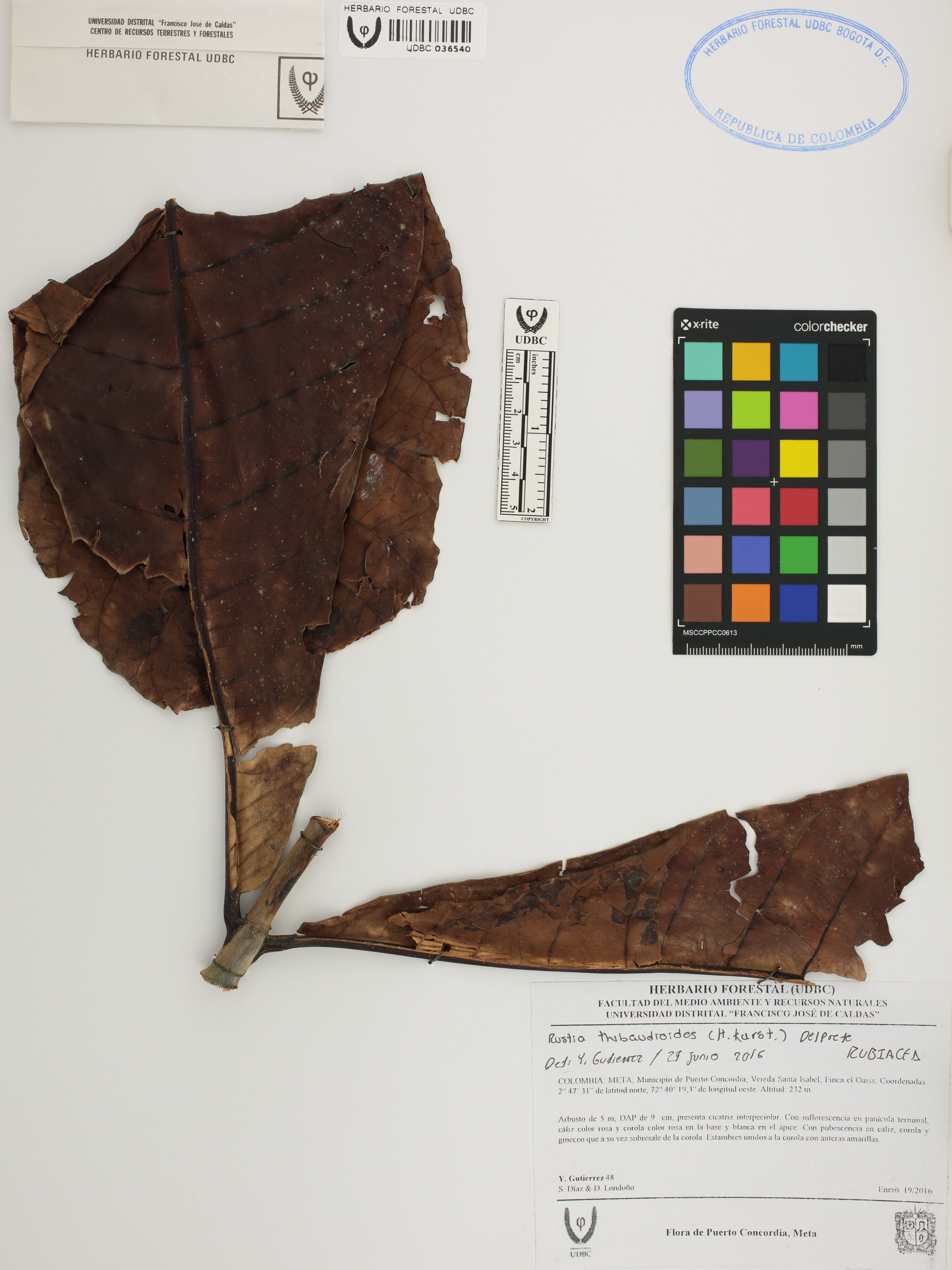 Fotografía del ejemplar Gutiérrez, Y. 48, determinado como Rustia thibaudioides en el año 2016