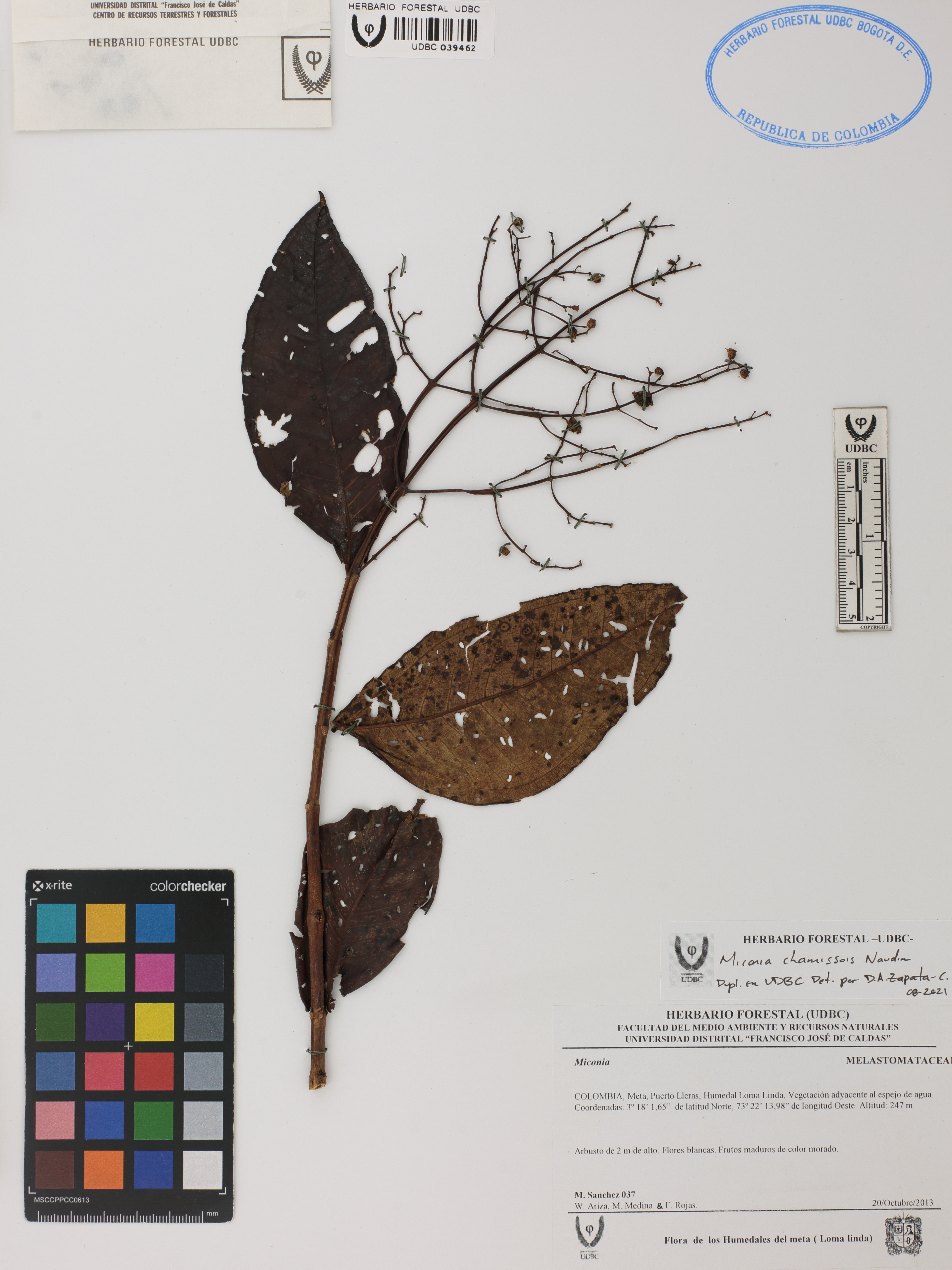 Fotografía del ejemplar Sánchez, M. 37, determinado como Miconia chamissois en el año 2021