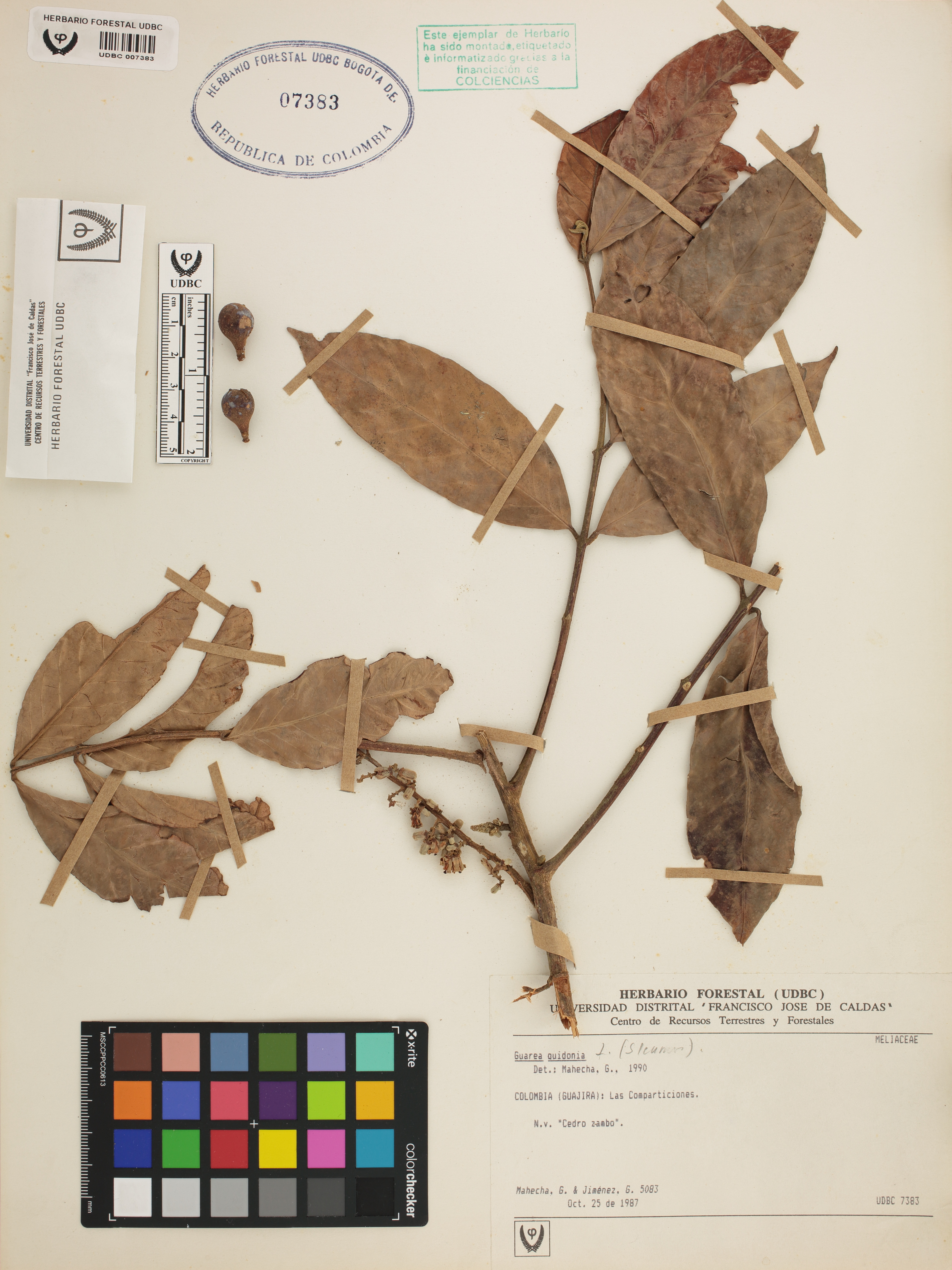 Fotografía del ejemplar Mahecha, G. 5083, determinado como Guarea guidonia en el año 1990