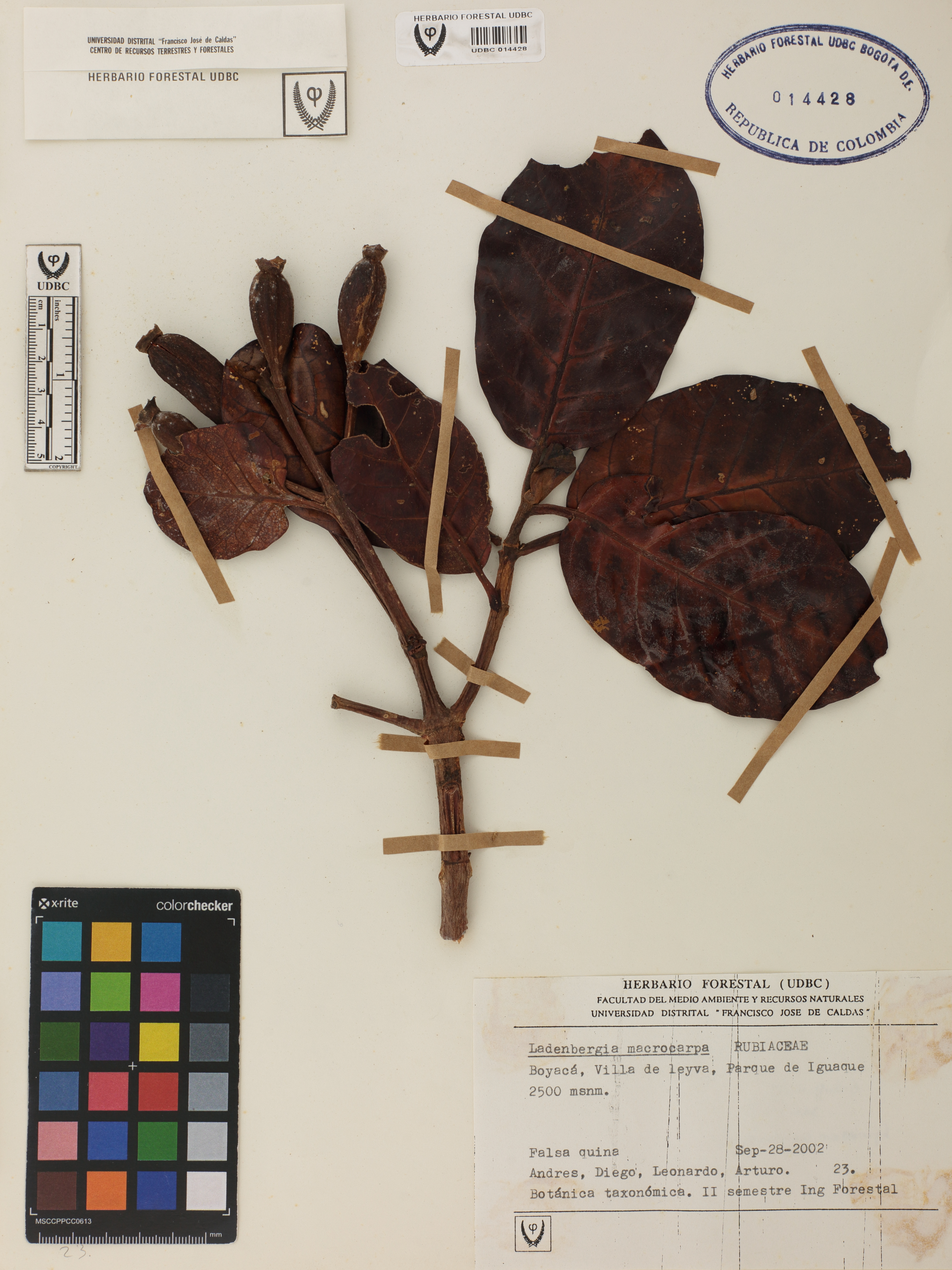| dc.description | Fotografía del ejemplar Andrés, 23, determinado como Ladenbergia macrocarpa | |