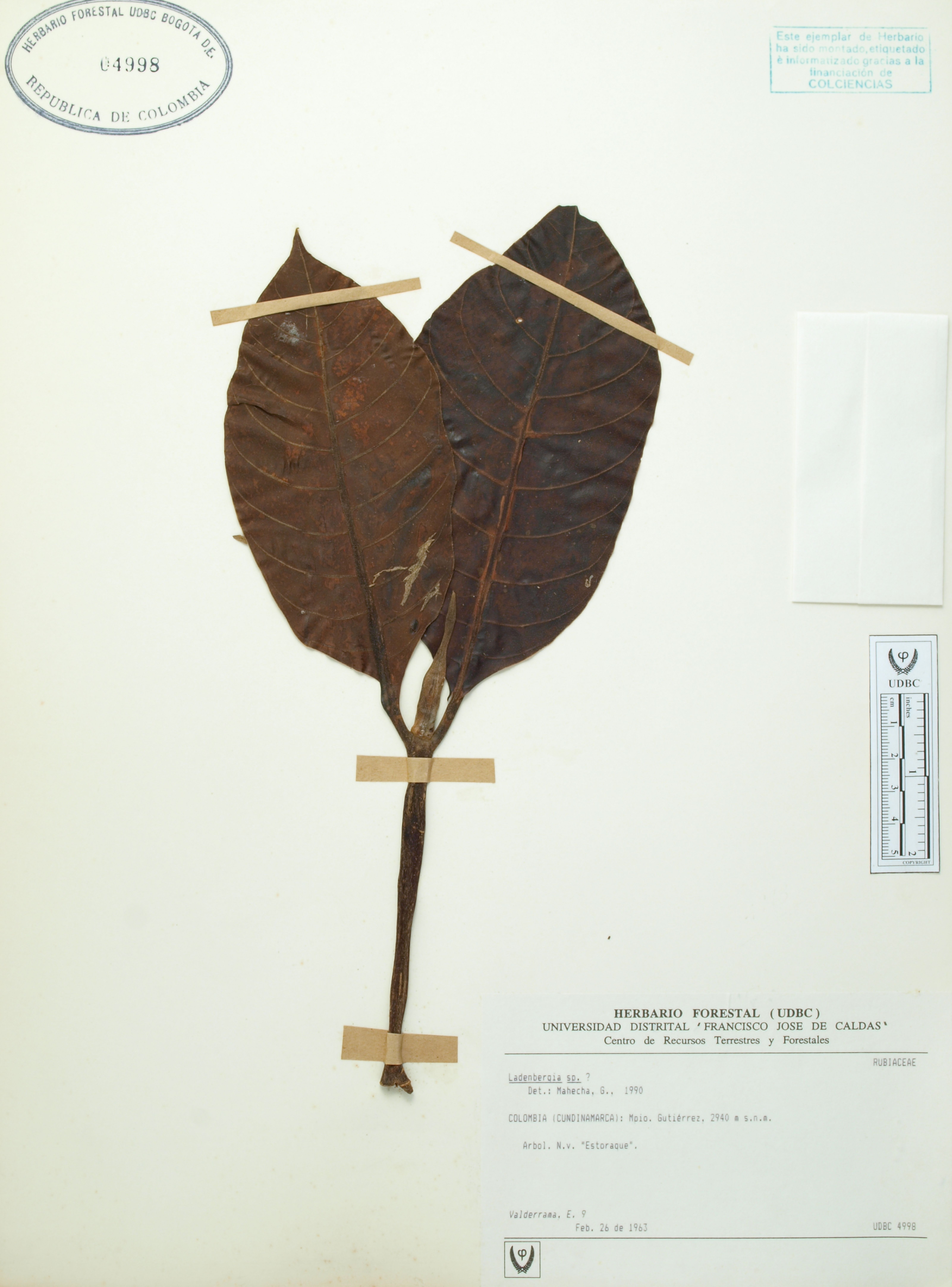 | dc.description | Fotografía del ejemplar Valderrama, E. 9, determinado como Ladenbergia sp. en el año 1990 | |