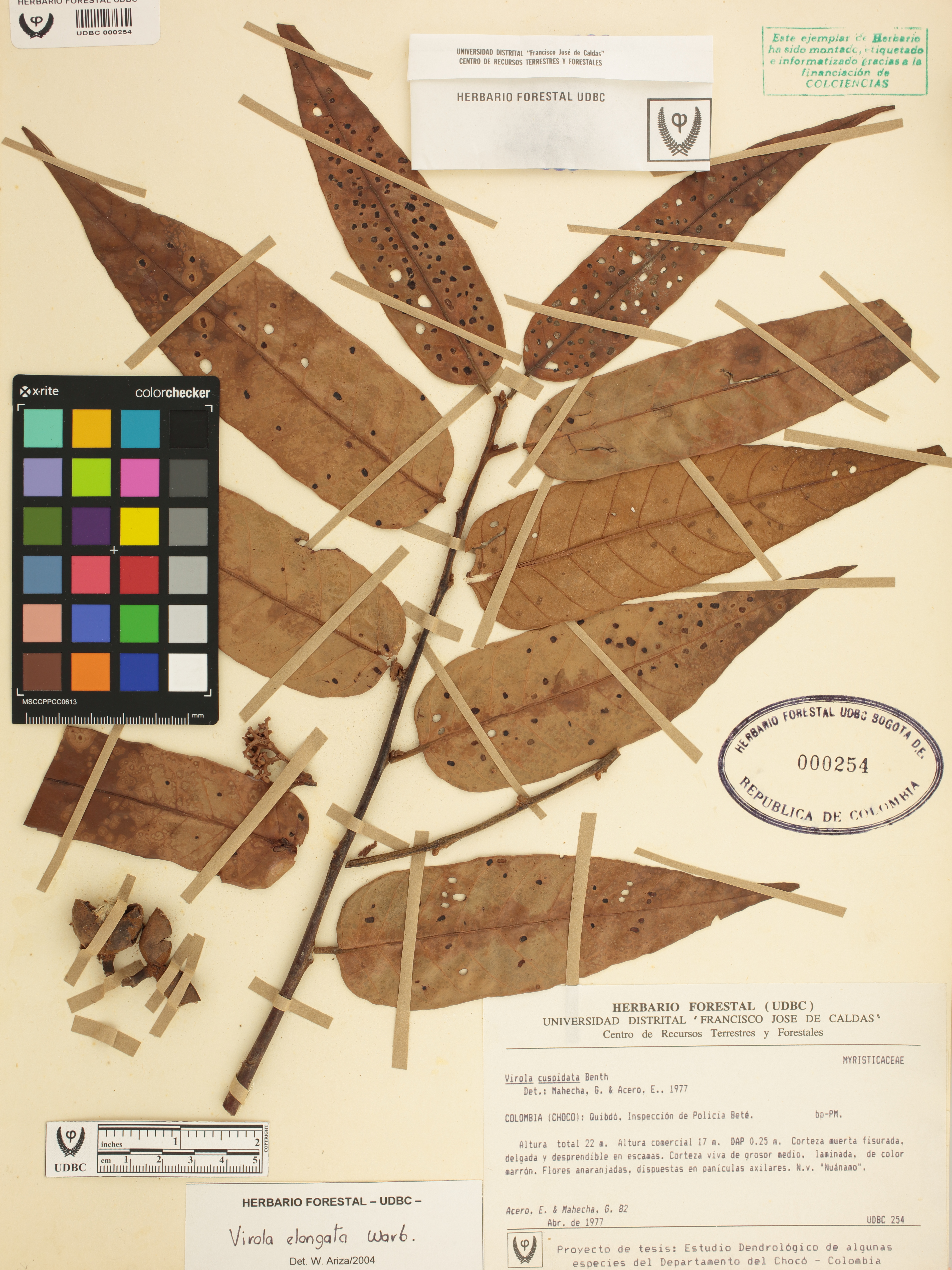 | dc.description | Fotografía del ejemplar Acero, E. 82, determinado como Virola elongata en el año 2004 | |