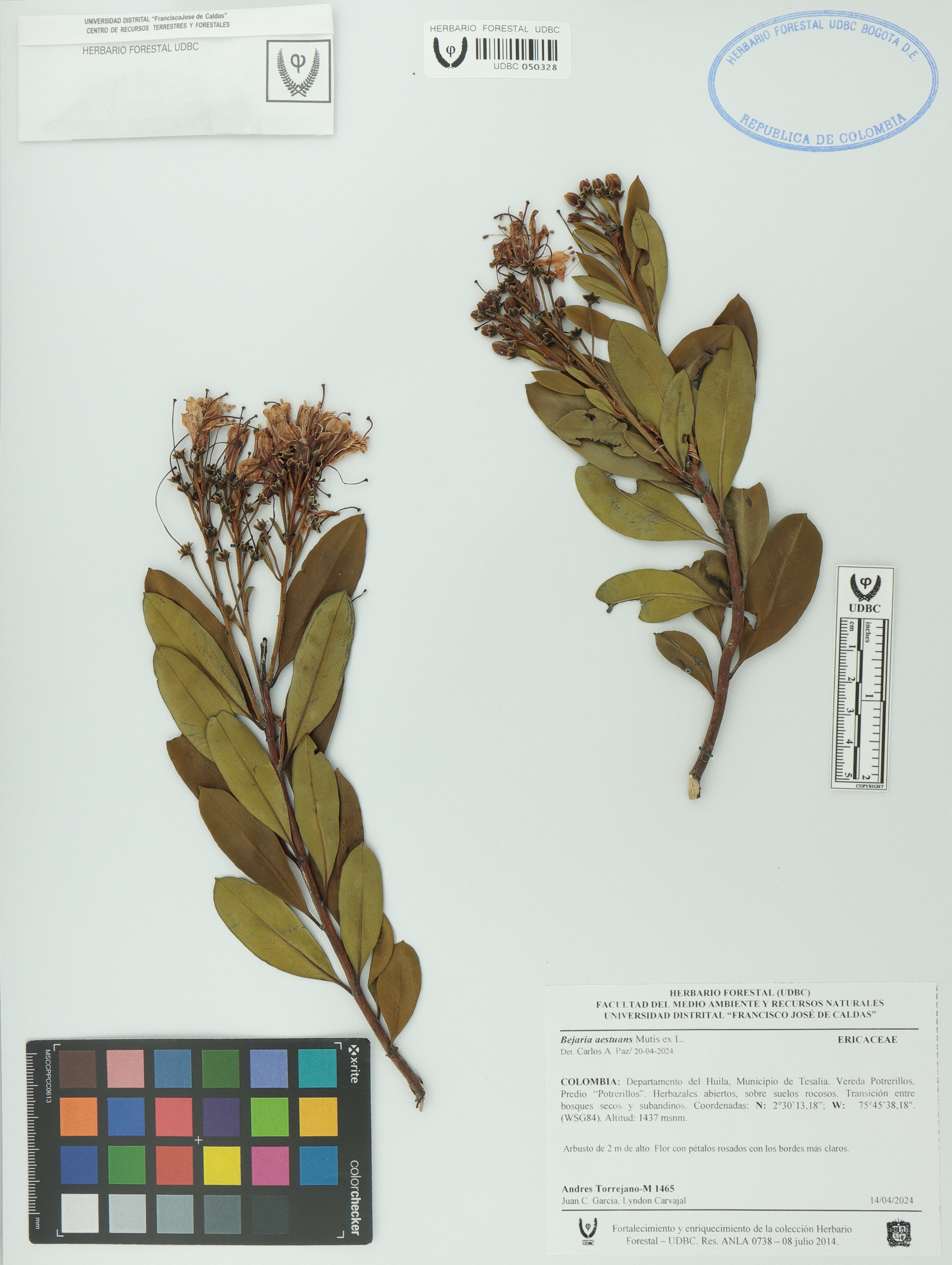 | dc.description | Fotografía del ejemplar Torrejano-M., A. 1465, determinado como Bejaria aestuans en el año 2024 | |