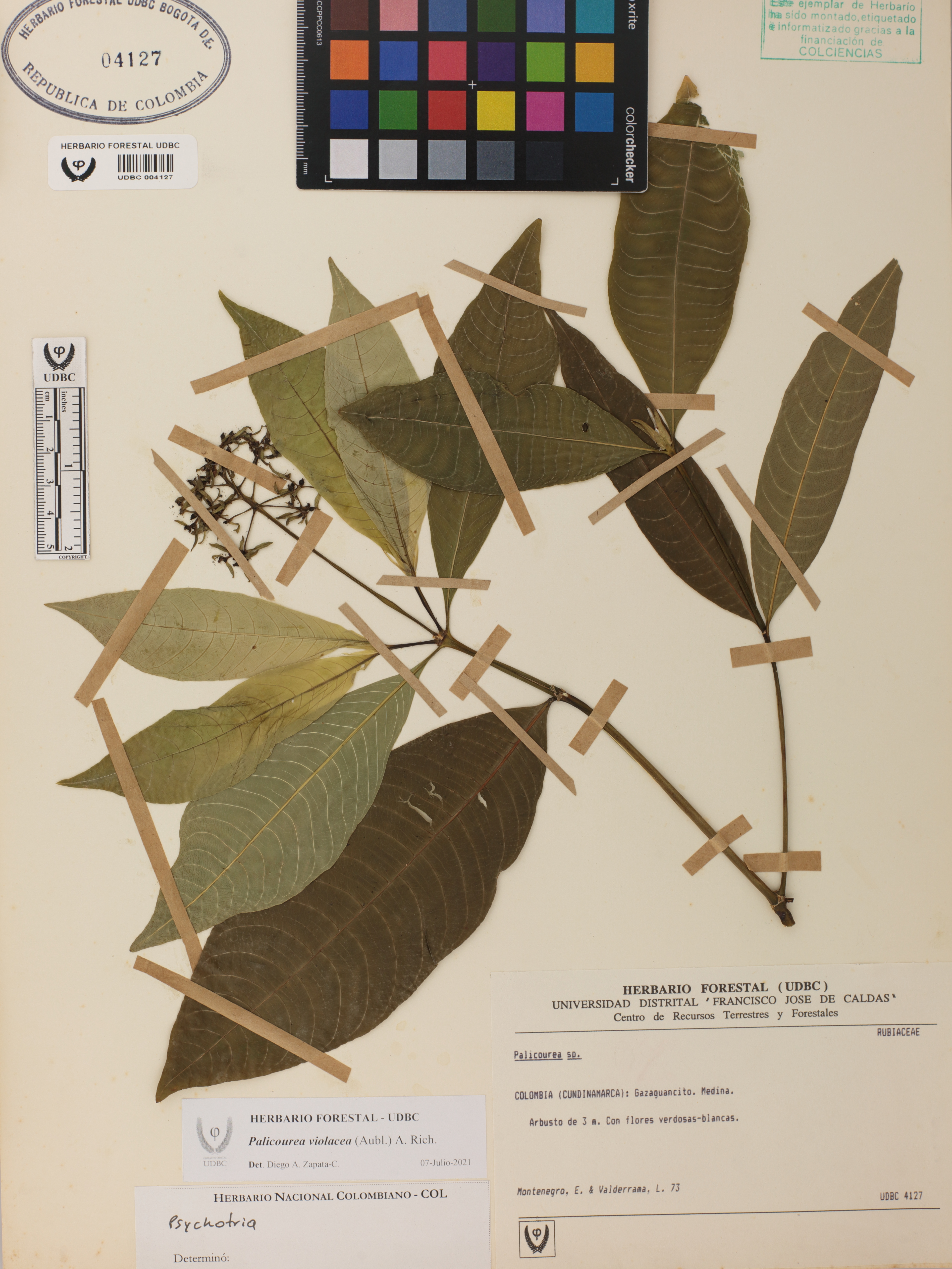 Fotografía del ejemplar Montenegro, D. 73, determinado como Palicourea violacea en el año 2021