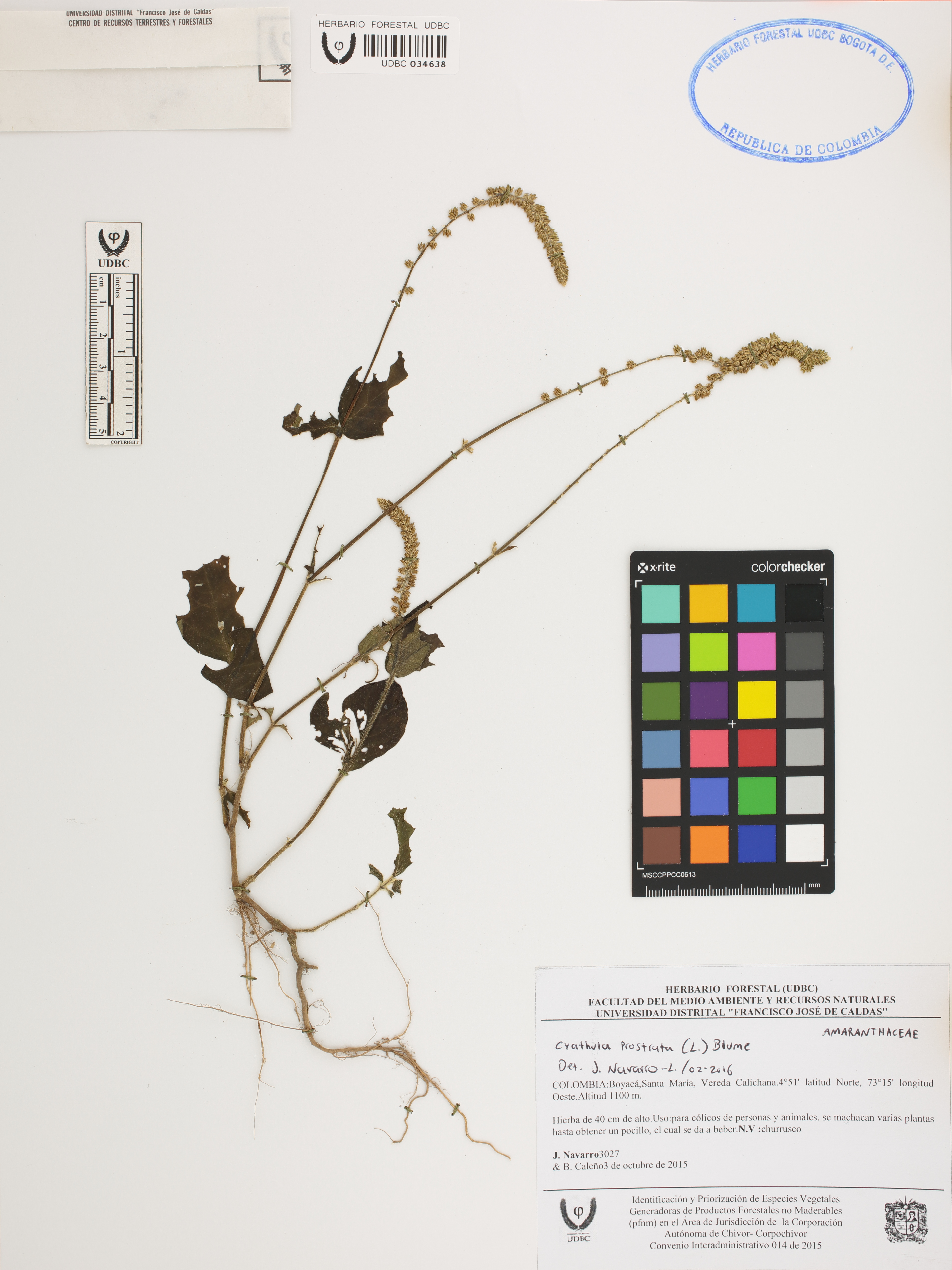 | dc.description | Fotografía del ejemplar Navarro, J. 3027, determinado como Cyathula prostrata en el año 2016 | |