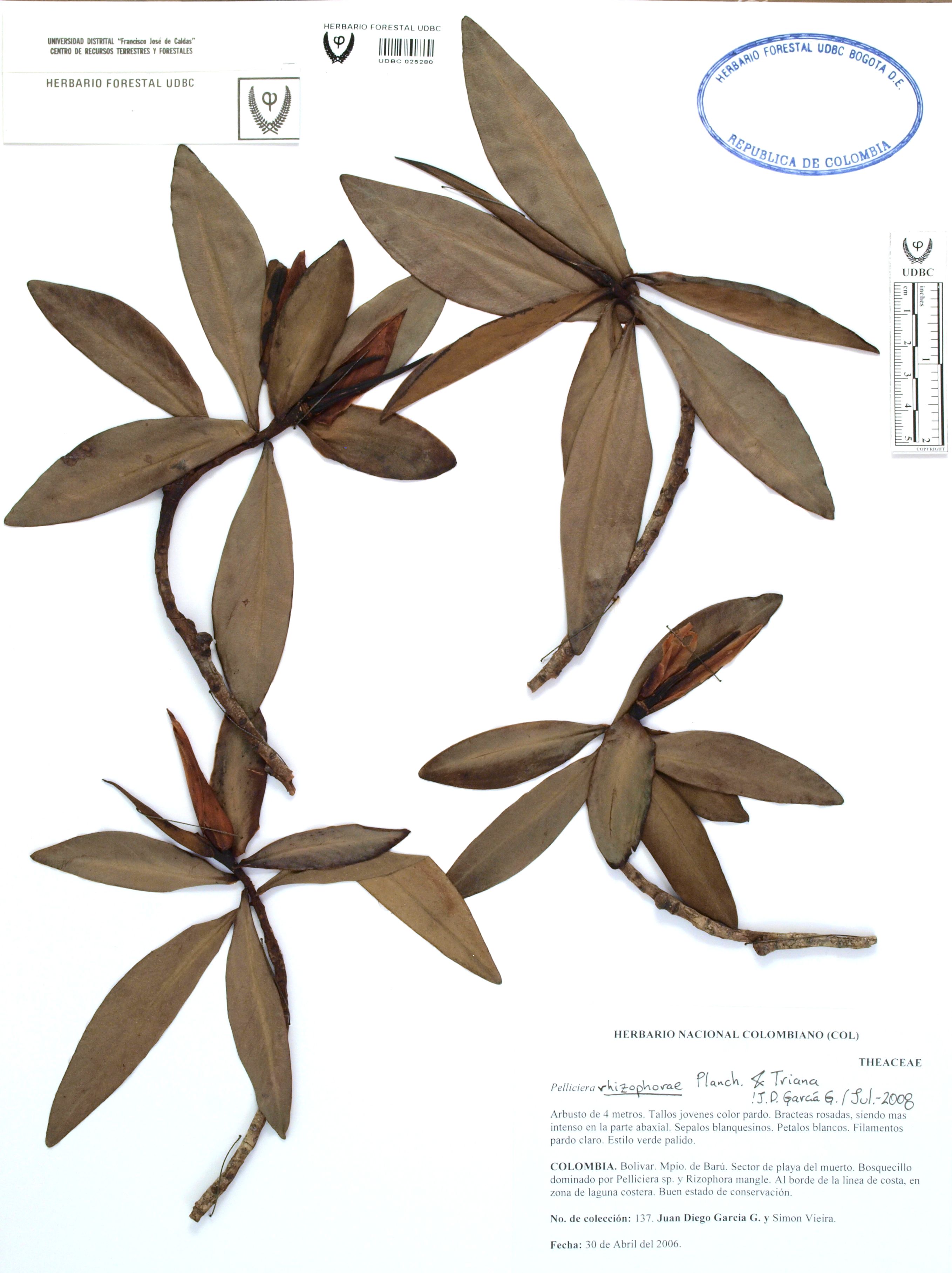 Fotografía del ejemplar García, J. 137, determinado como Pelliciera rhizophorae en el año 2008