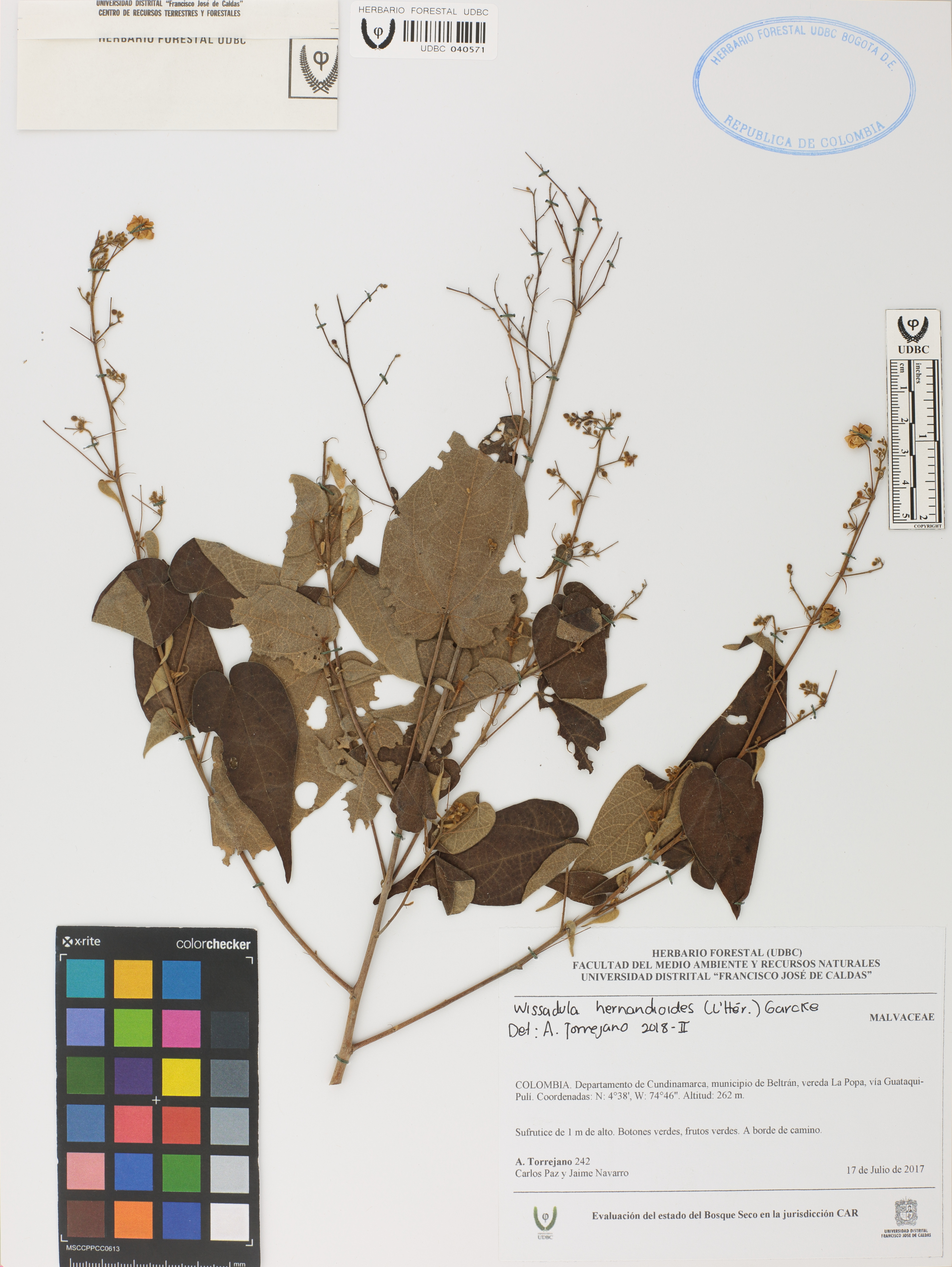 | dc.description | Fotografía del ejemplar Torrejano, A. 242, determinado como Wissadula hernandioides en el año 2018 | |