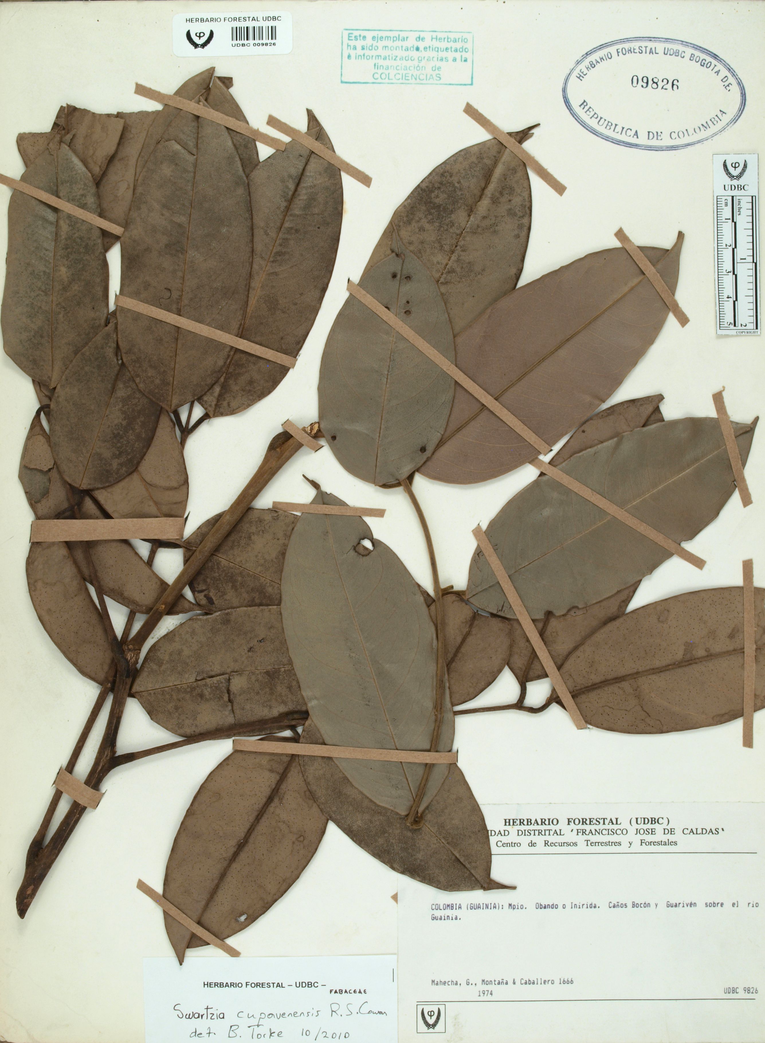 Fotografía del ejemplar Mahecha, G. 1666, determinado como Swartzia cupavenensis en el año 2010