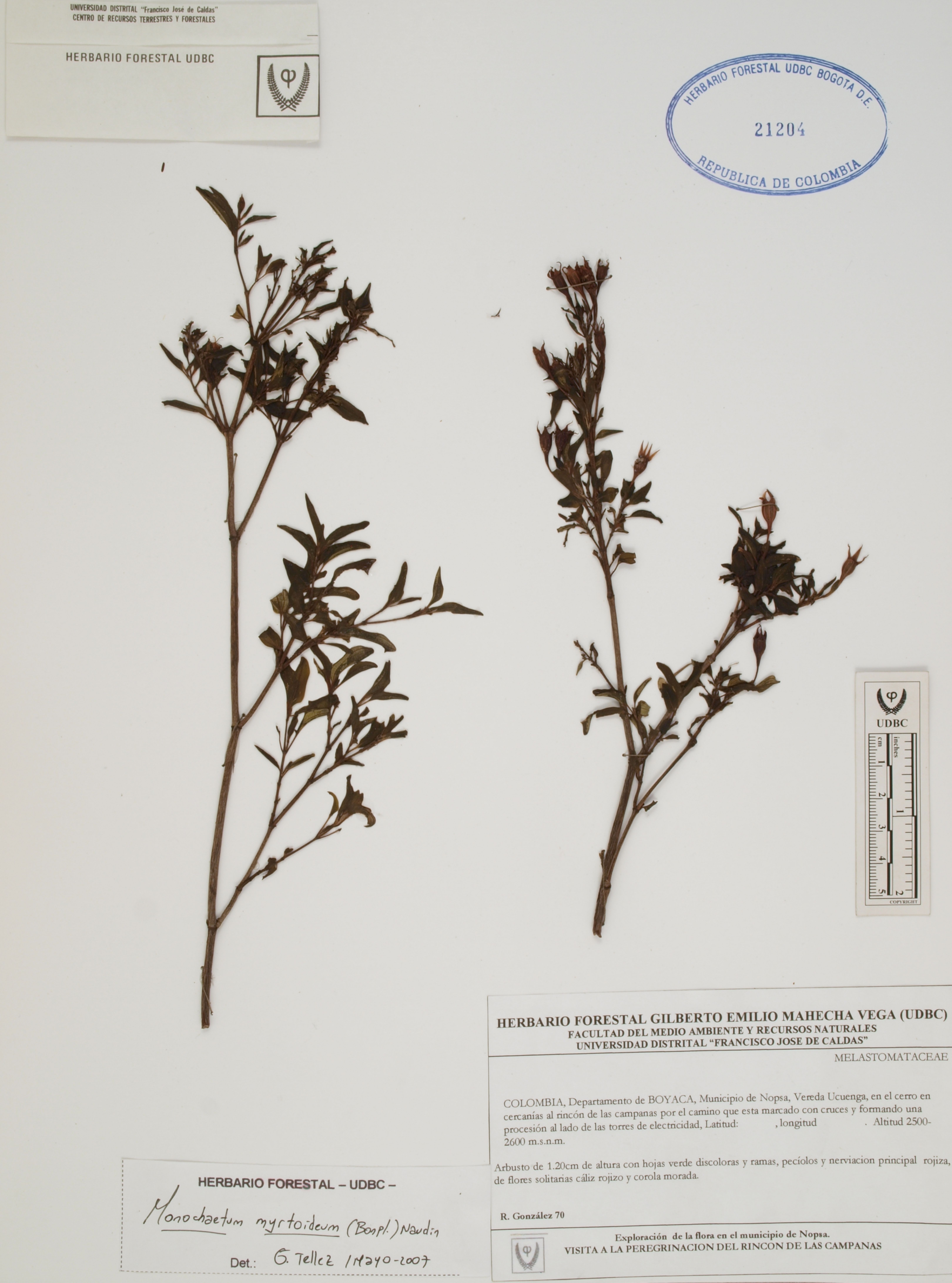 | dc.description | Fotografía del ejemplar González, R. 70, determinado como Monochaetum myrtoideum en el año 2007 | |