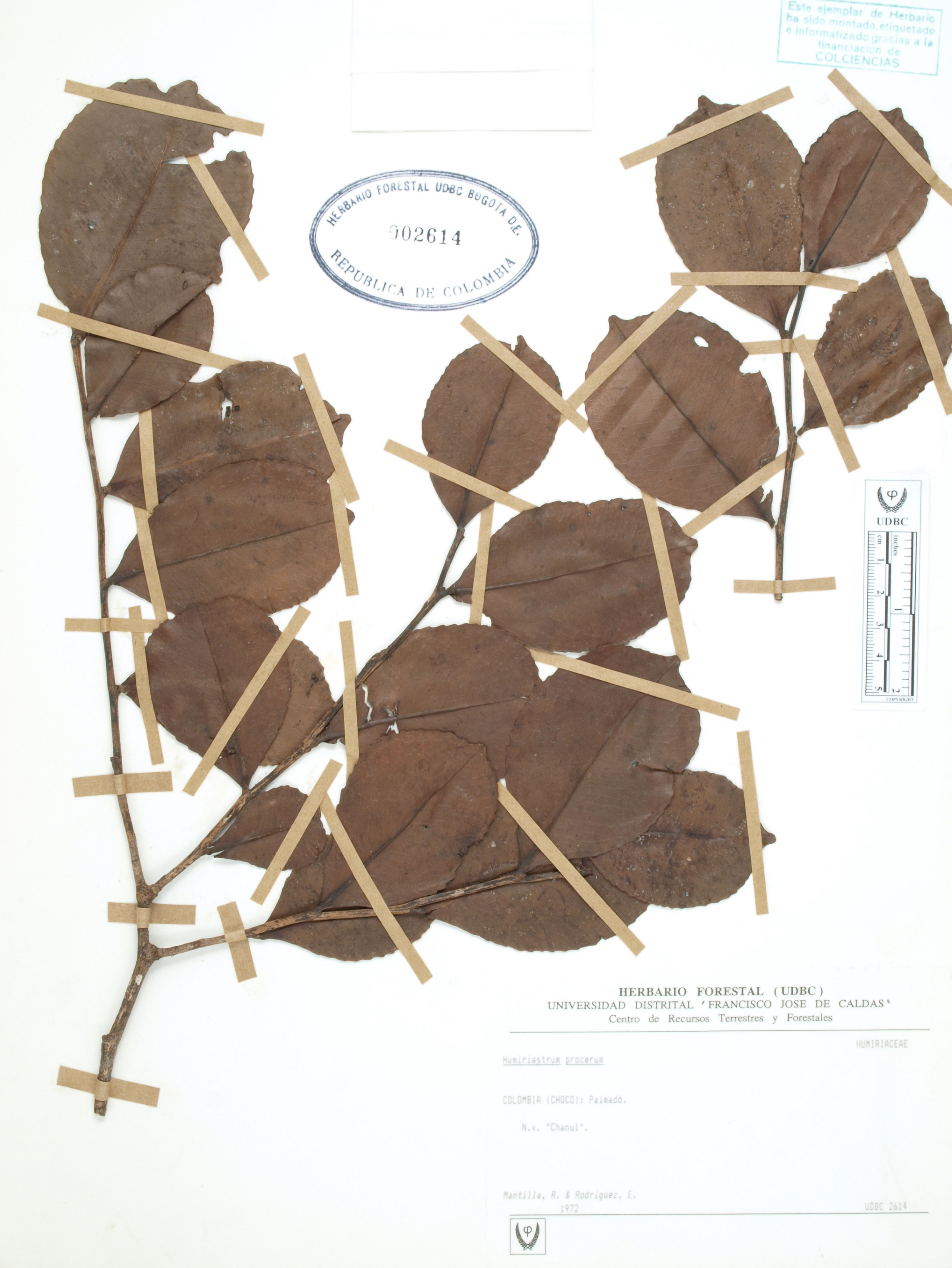 | dc.description | Fotografía del ejemplar Mantilla, R., determinado como Humiriastrum procerum | |