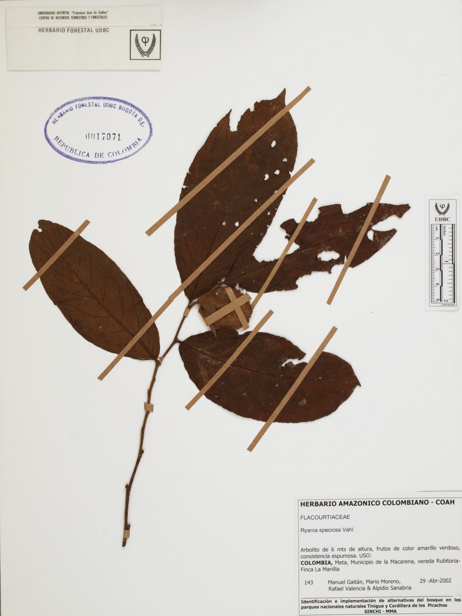 Fotografía del ejemplar Gaitán, M. 143, determinado como Ryania speciosa