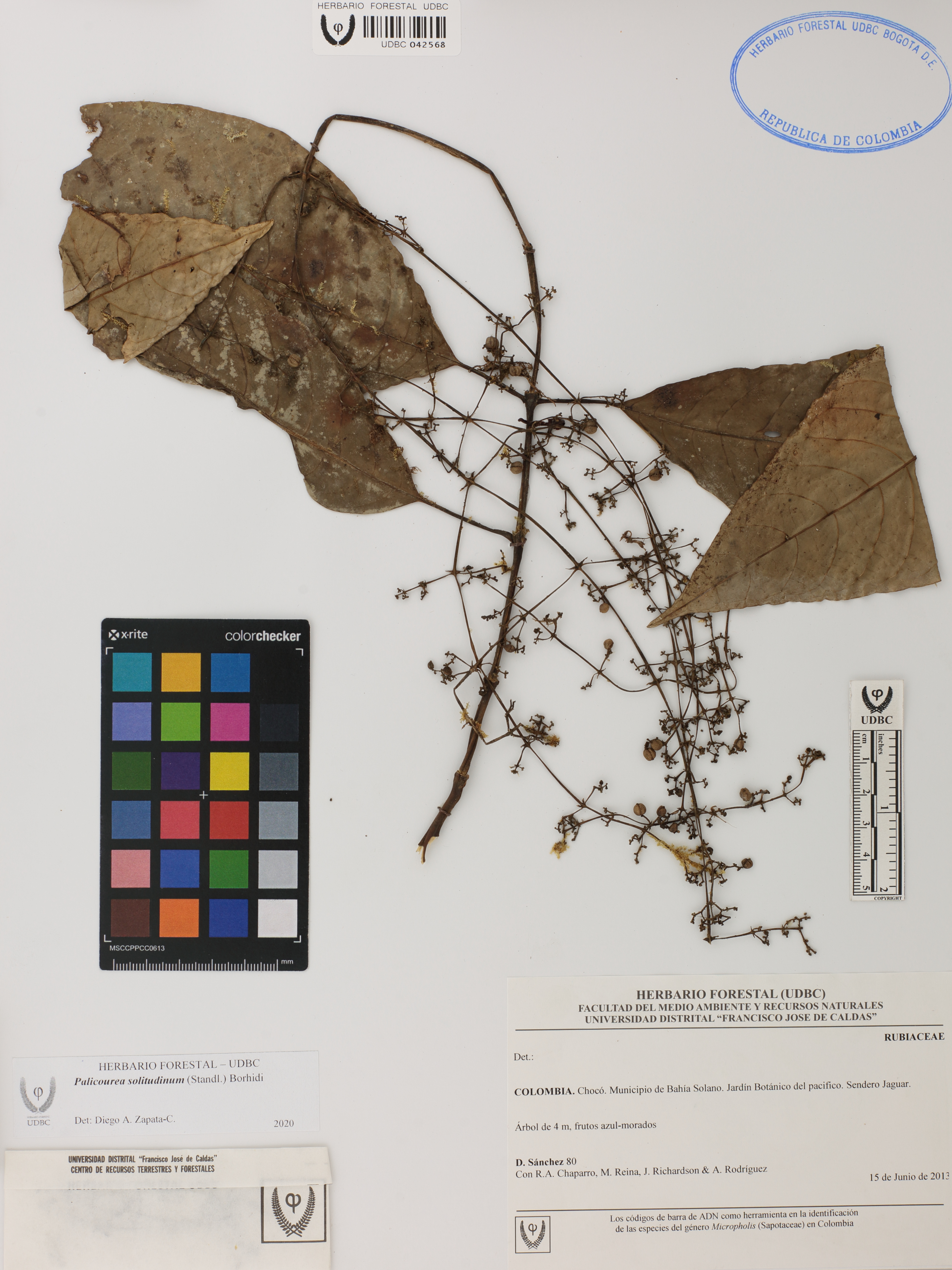 Fotografía del ejemplar Sánchez, D. 80, determinado como Palicourea solitudinum en el año 2020