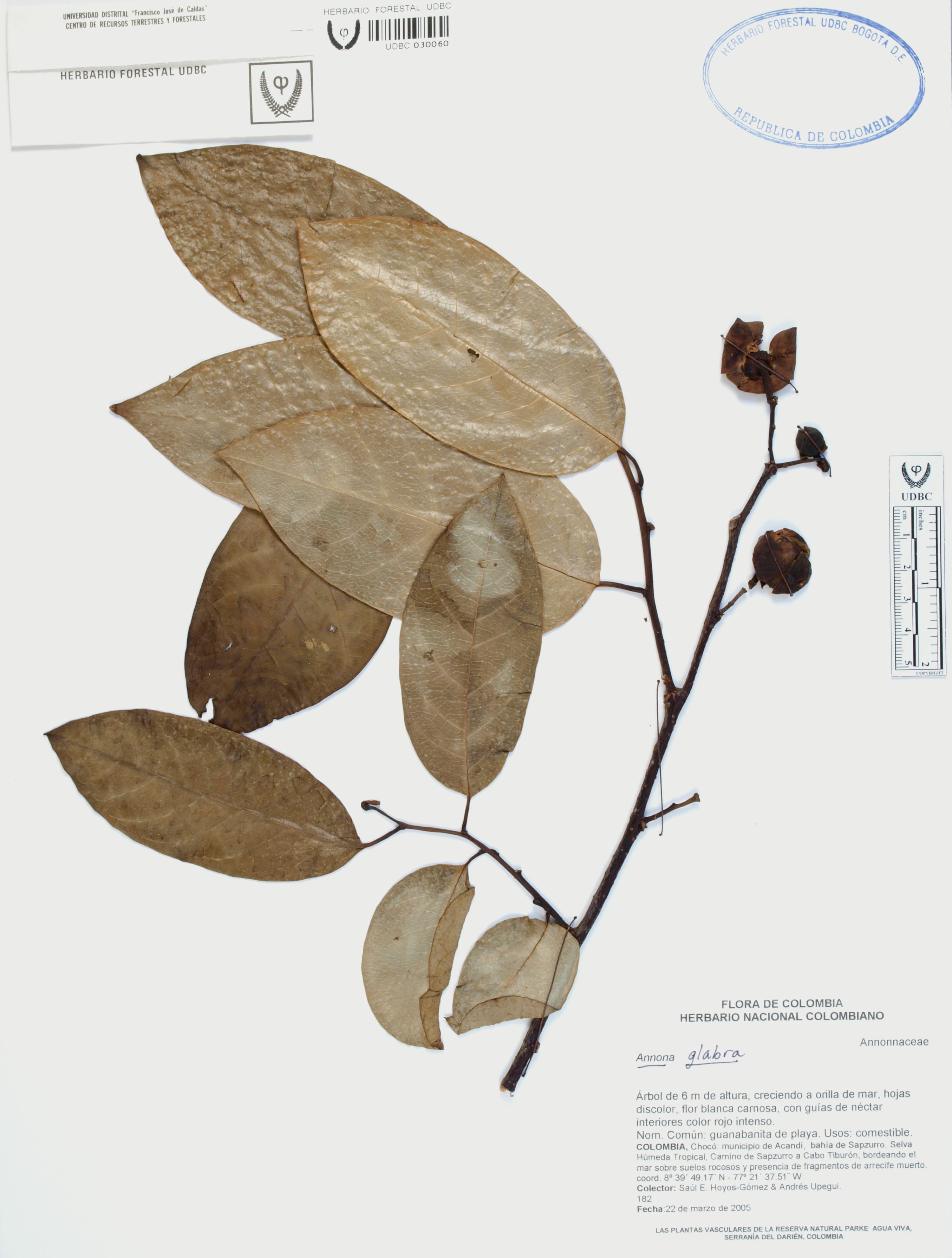 Fotografía del ejemplar Hoyos-Gómez, S. 182, determinado como Annona glabra