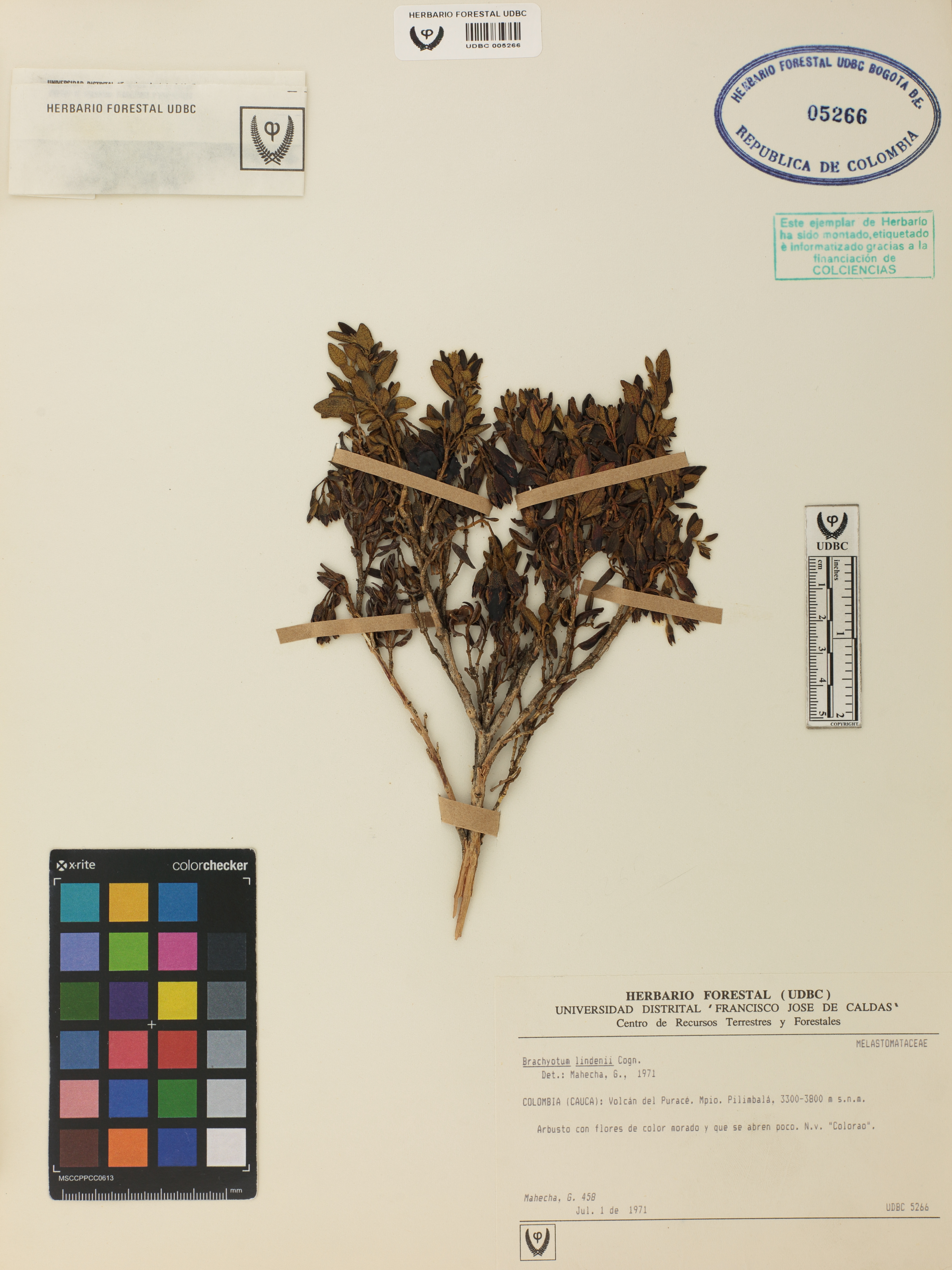 Fotografía del ejemplar Mahecha, G. 458, determinado como Brachyotum lindenii