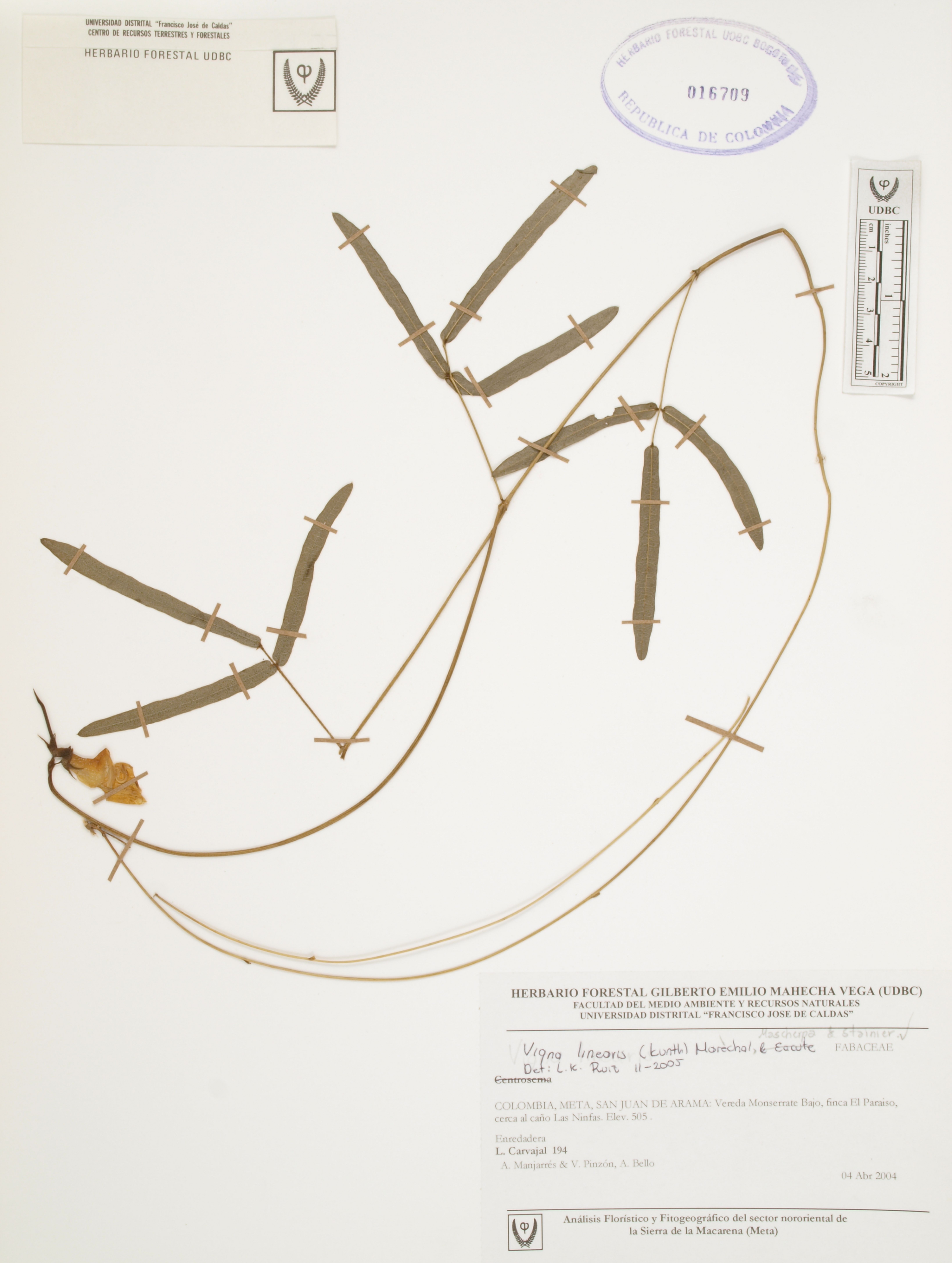 Fotografía del ejemplar Carvajal, L. 194, determinado como Vigna linearis en el año 2005