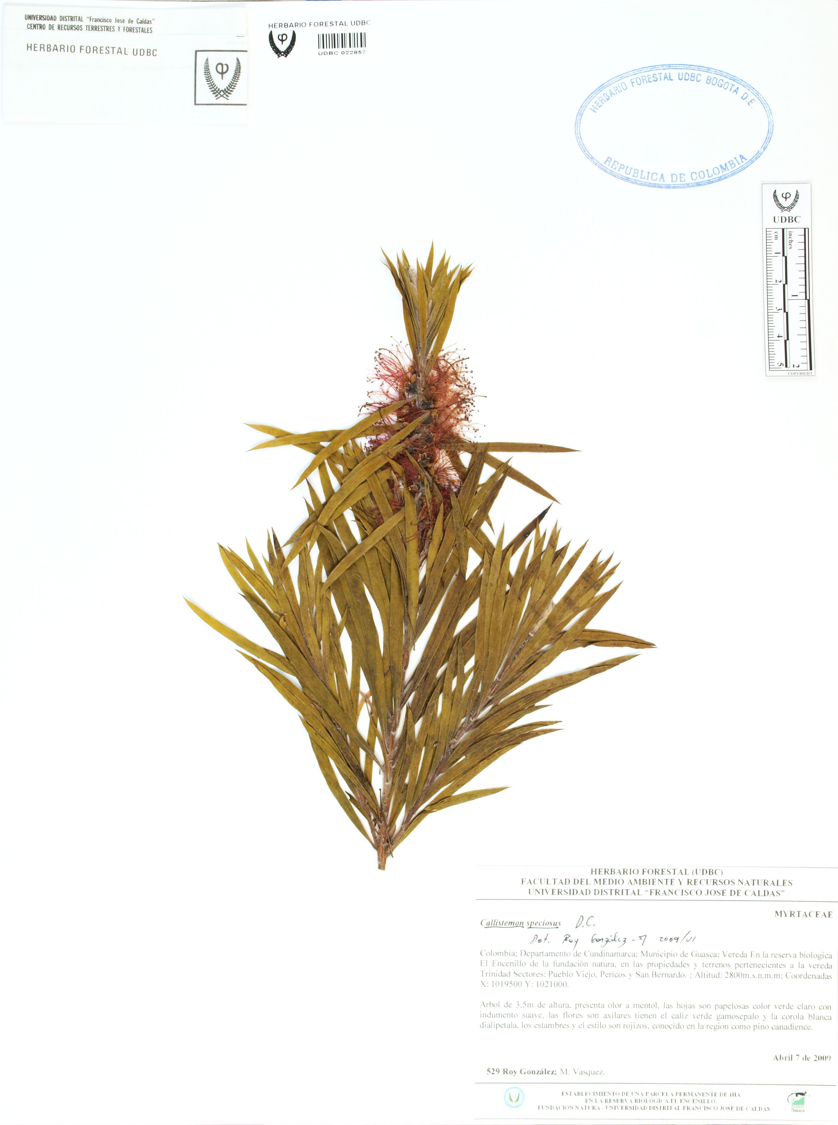 Fotografía del ejemplar González, R. 529, determinado como Callistemon speciosus en el año 2009