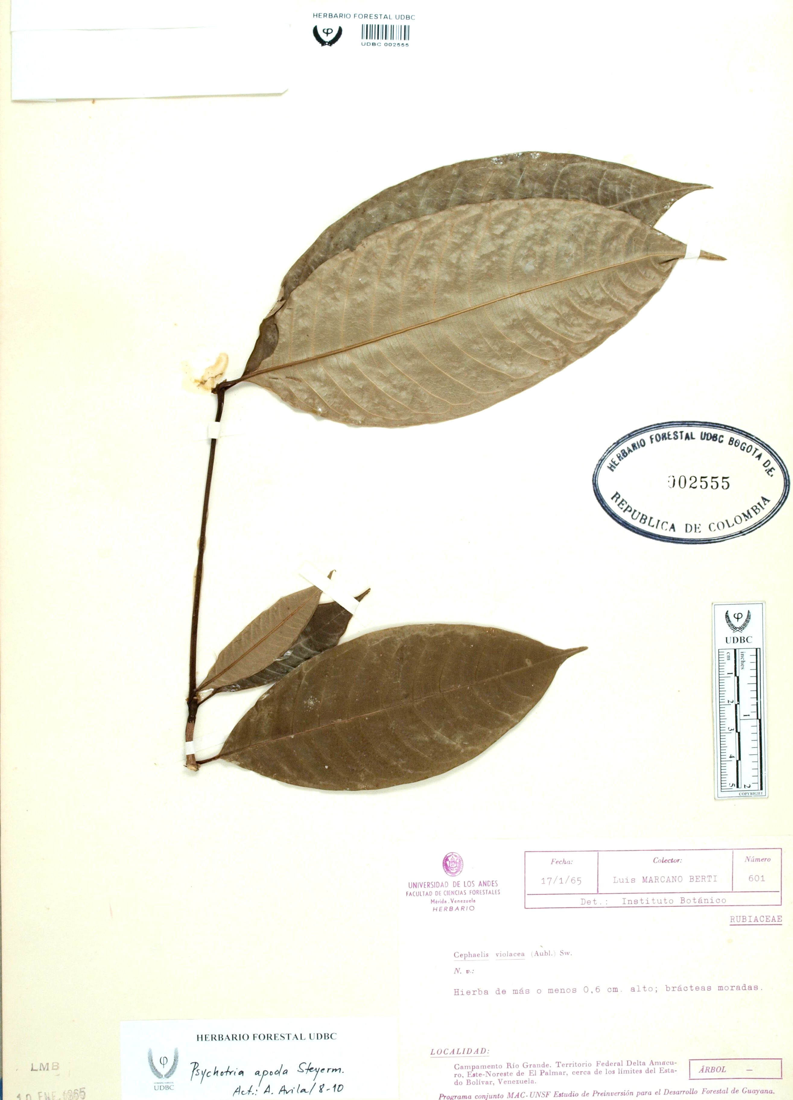 | dc.description | Fotografía del ejemplar Marcano, L. 601, determinado como Psychotria apoda en el año 2010 | |