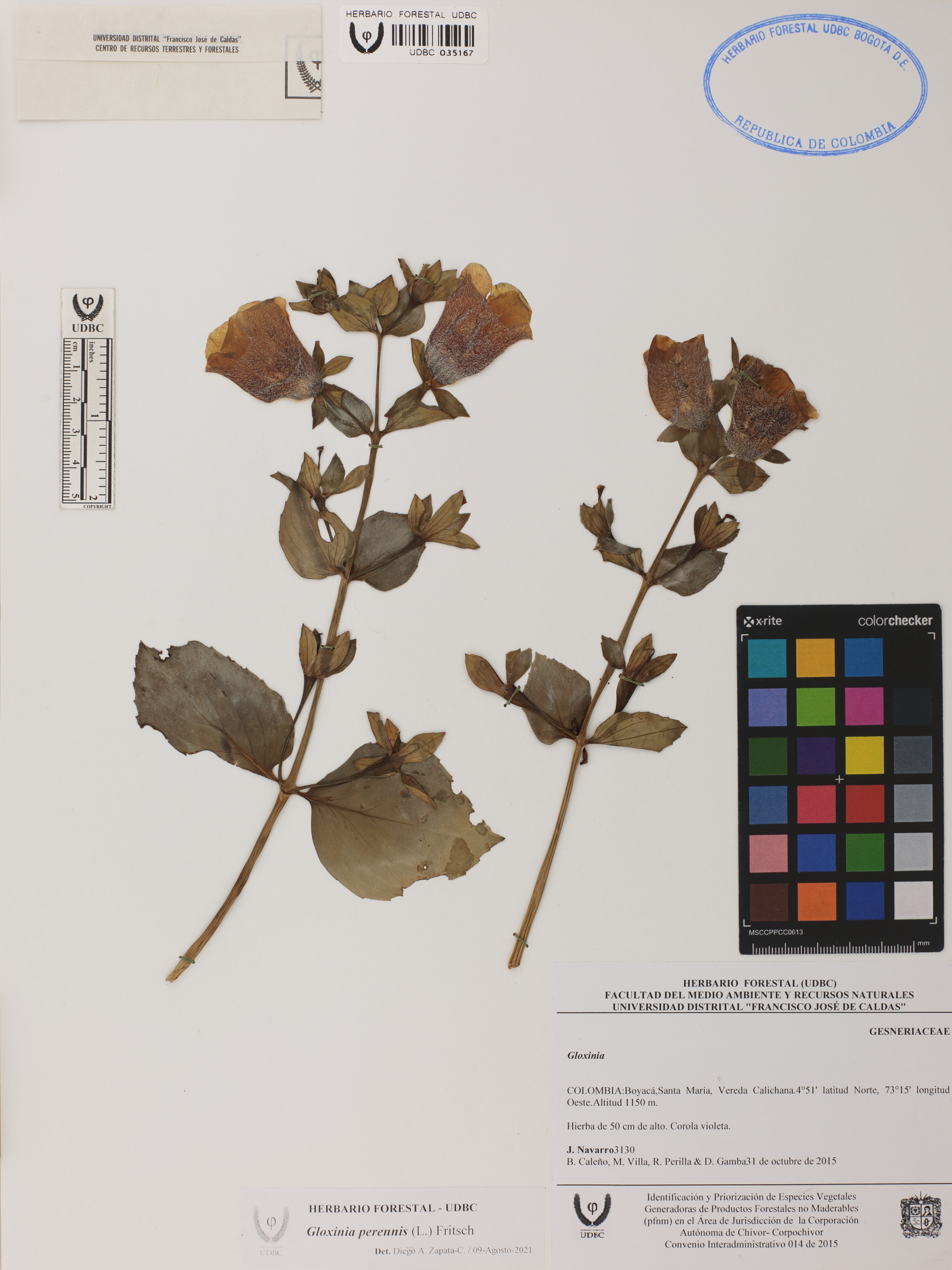 Fotografía del ejemplar Navarro, J. 3130, determinado como Gloxinia perennis en el año 2021