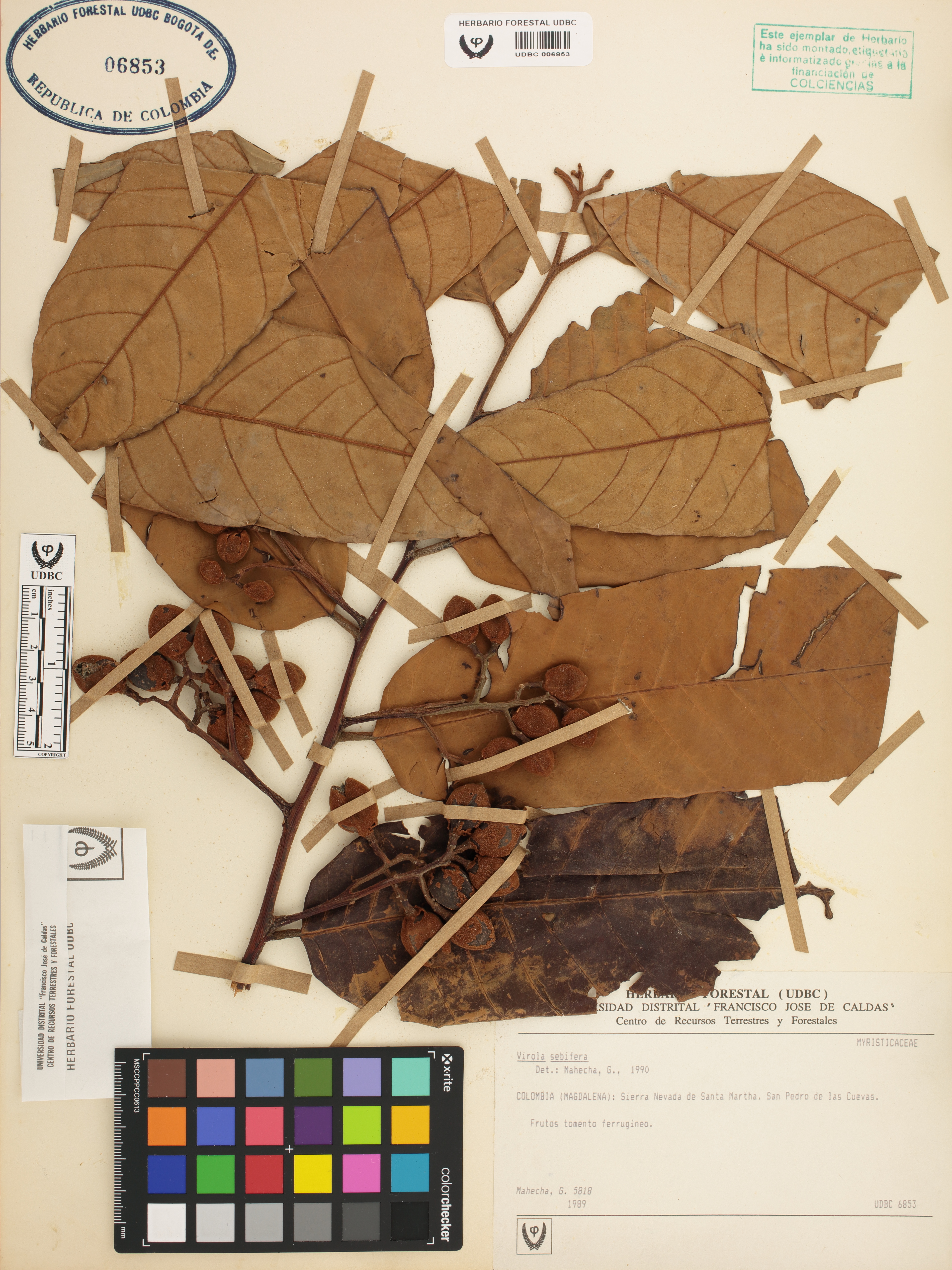 Fotografía del ejemplar Mahecha, G. 5818, determinado como Virola sebifera en el año 1990