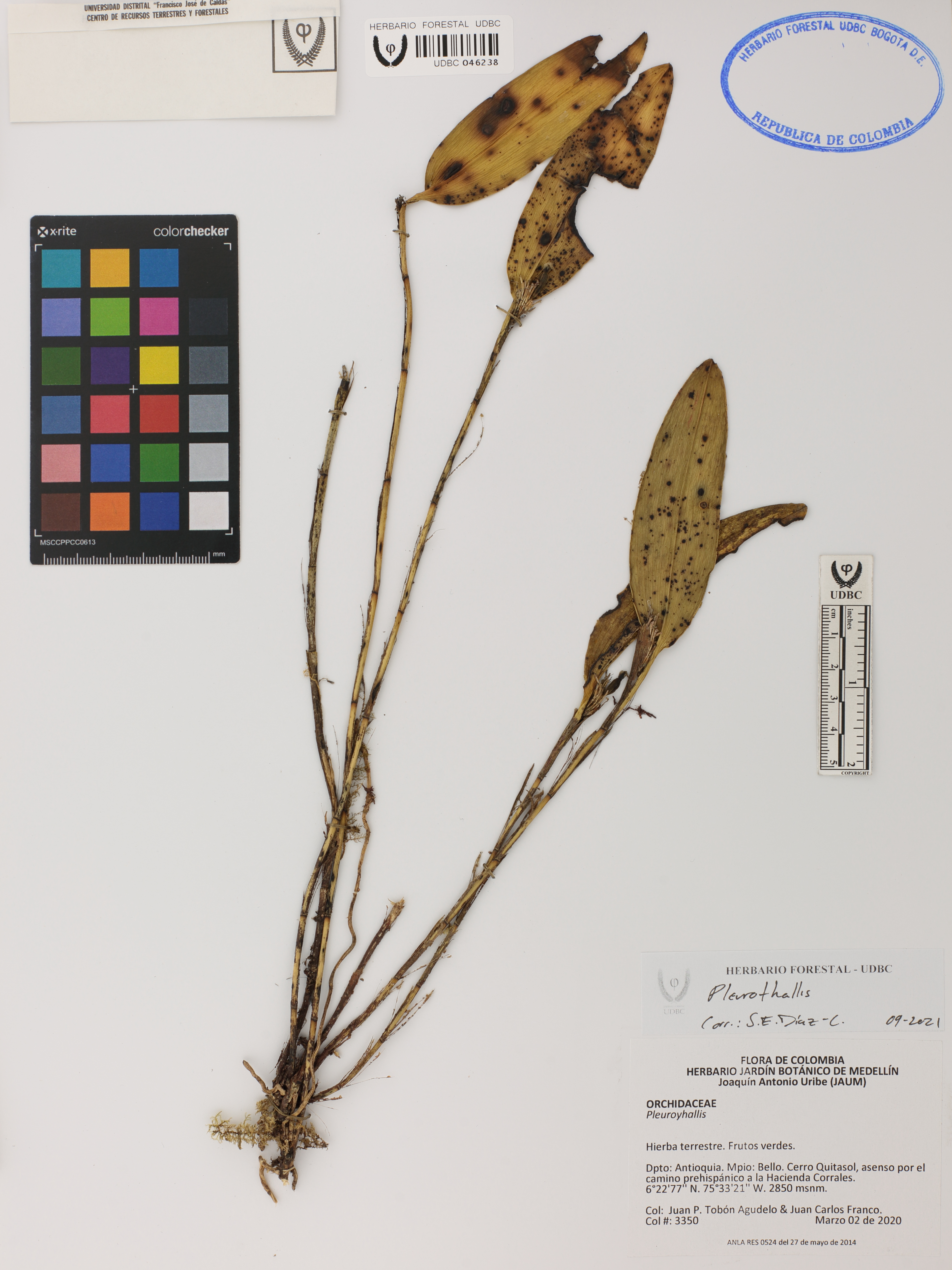 Fotografía del ejemplar Tobón-Agudelo, J. 3350, determinado como Pleurothallis sp.