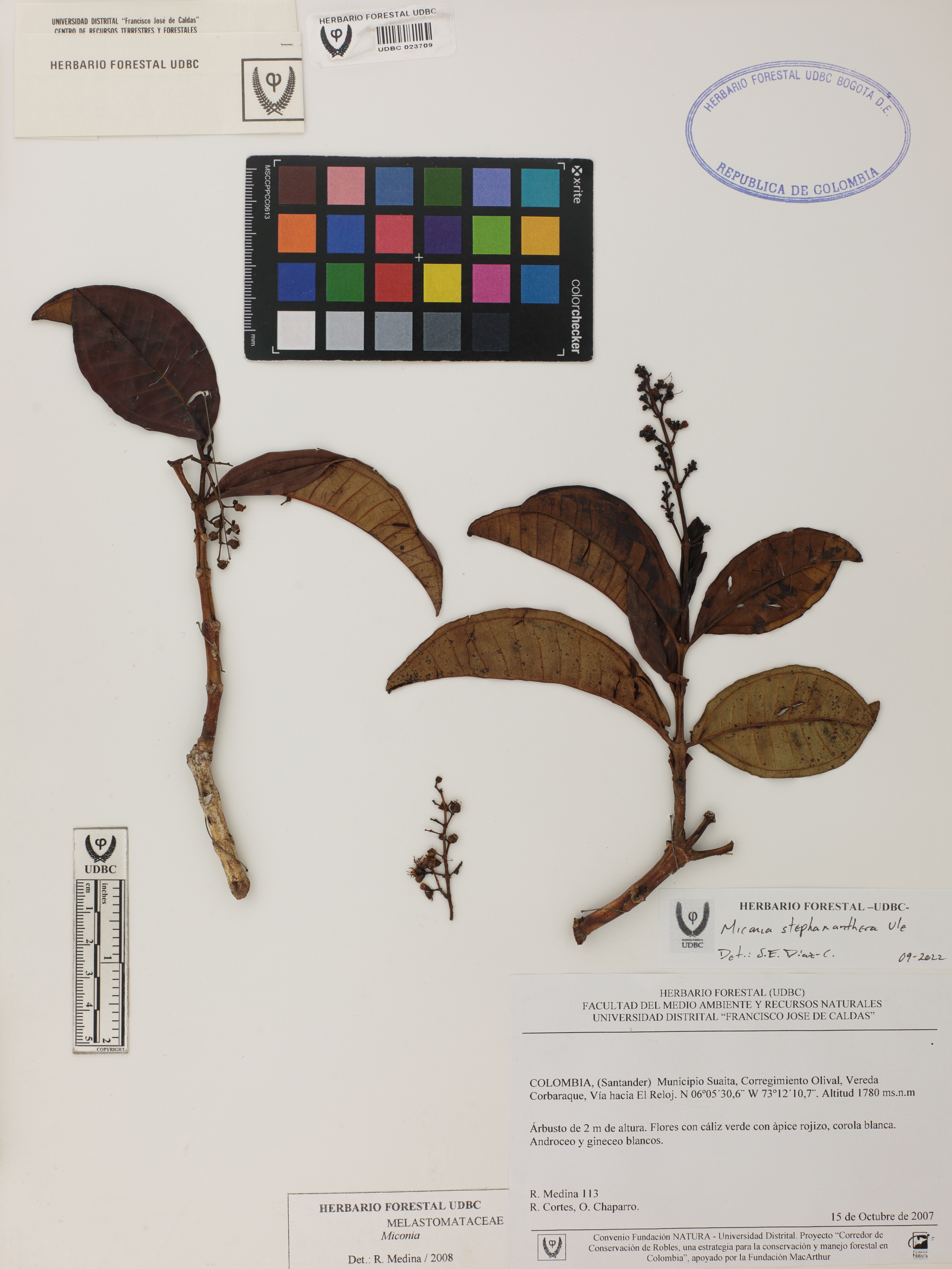 Fotografía del ejemplar Medina, R. 113, determinado como Miconia chamissois en el año 2022