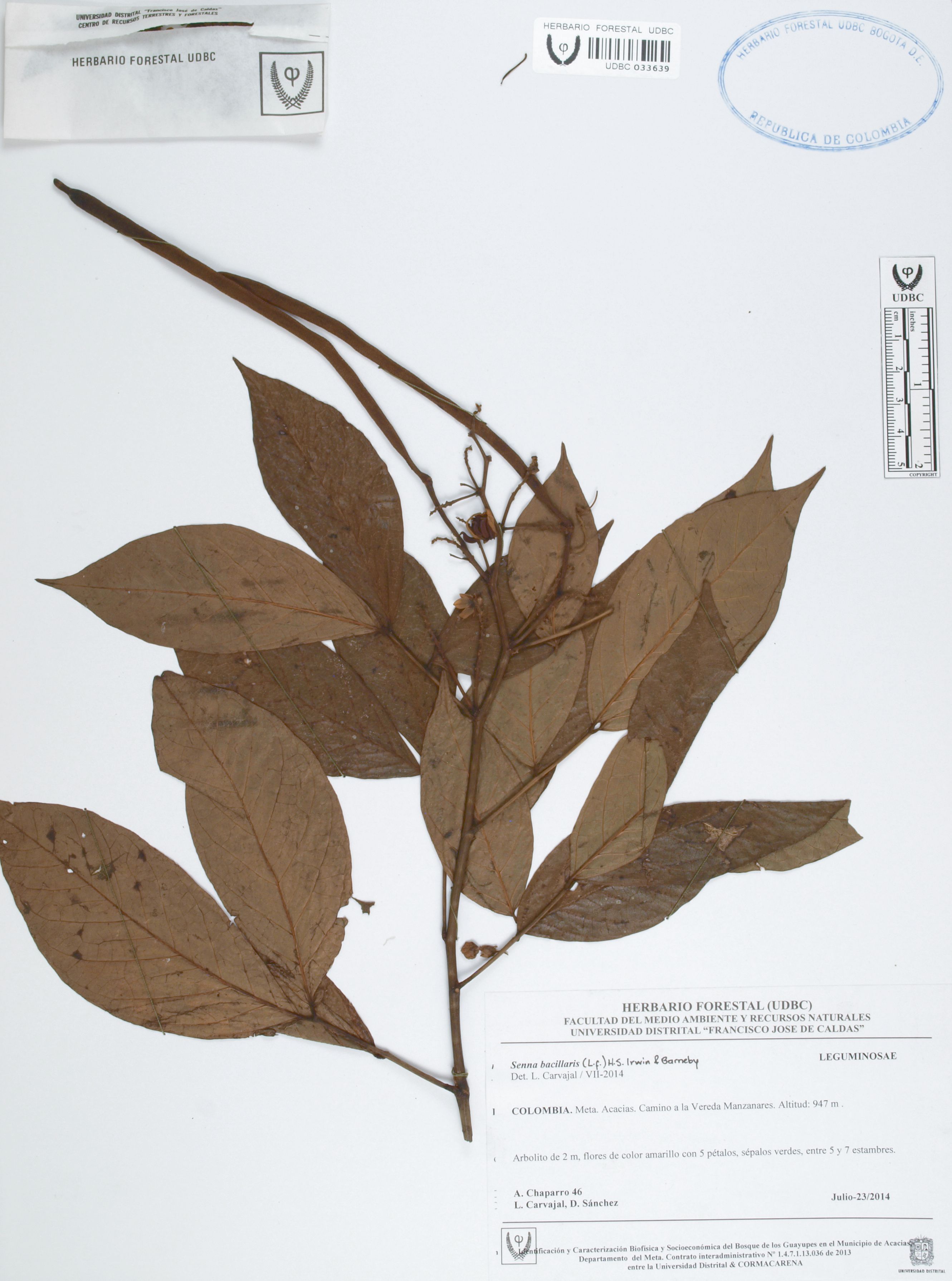 | dc.description | Fotografía del ejemplar Chaparro, A. 46, determinado como Senna bacillaris en el año 2014 | |