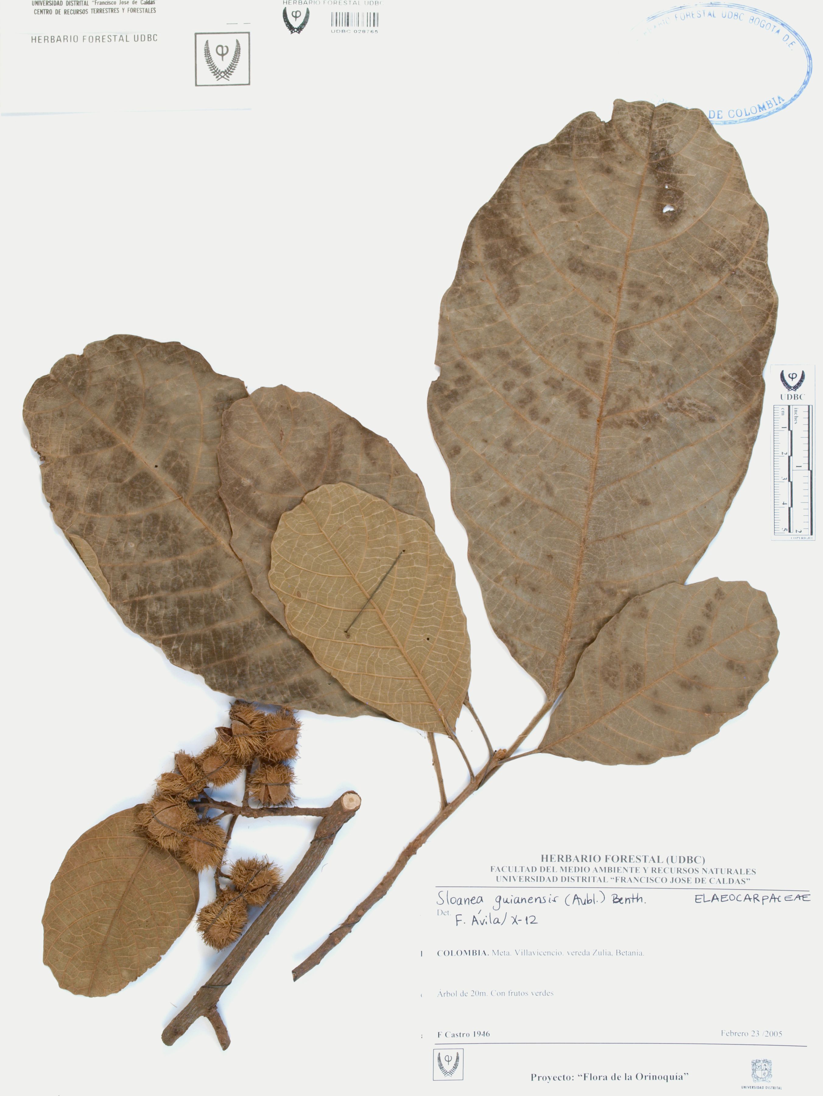 Fotografía del ejemplar Castro, F. 1946, determinado como Sloanea guianensis en el año 2012