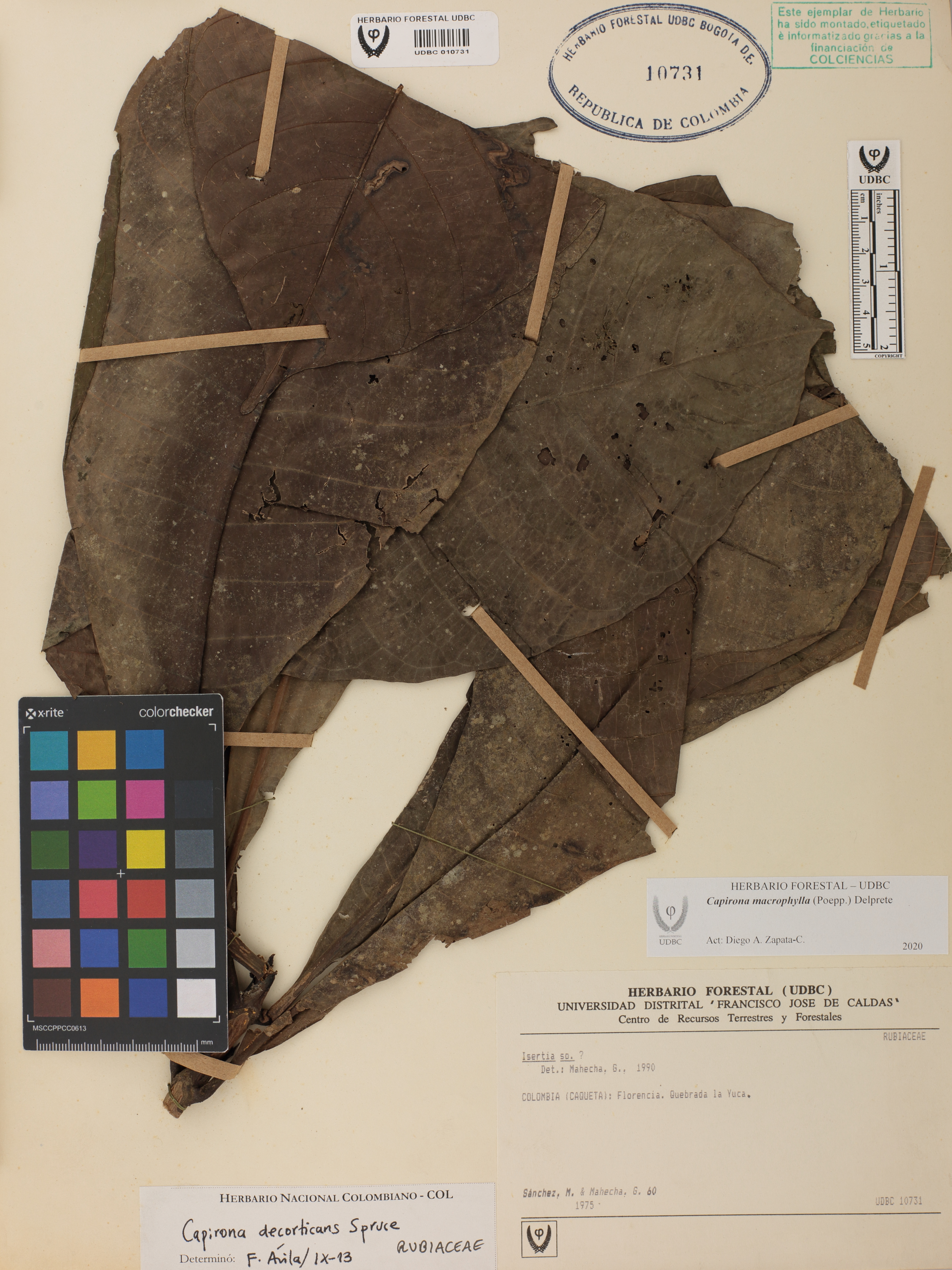 Fotografía del ejemplar Sánchez, M. 60, determinado como Capirona macrophylla en el año 2013