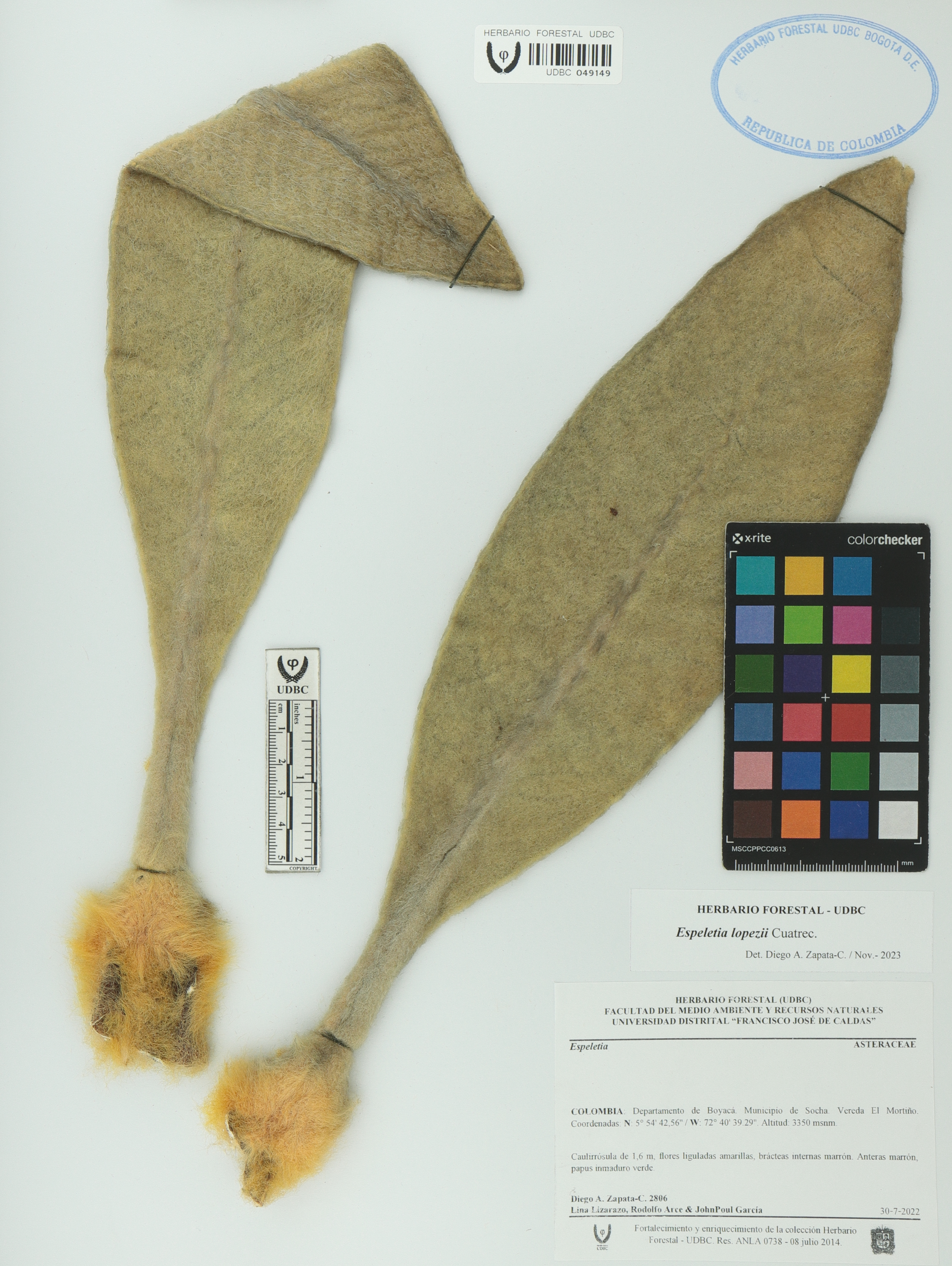 | dc.description | Fotografía del ejemplar Zapata-C., D. 2806, determinado como Espeletia lopezii en el año 2023 | |