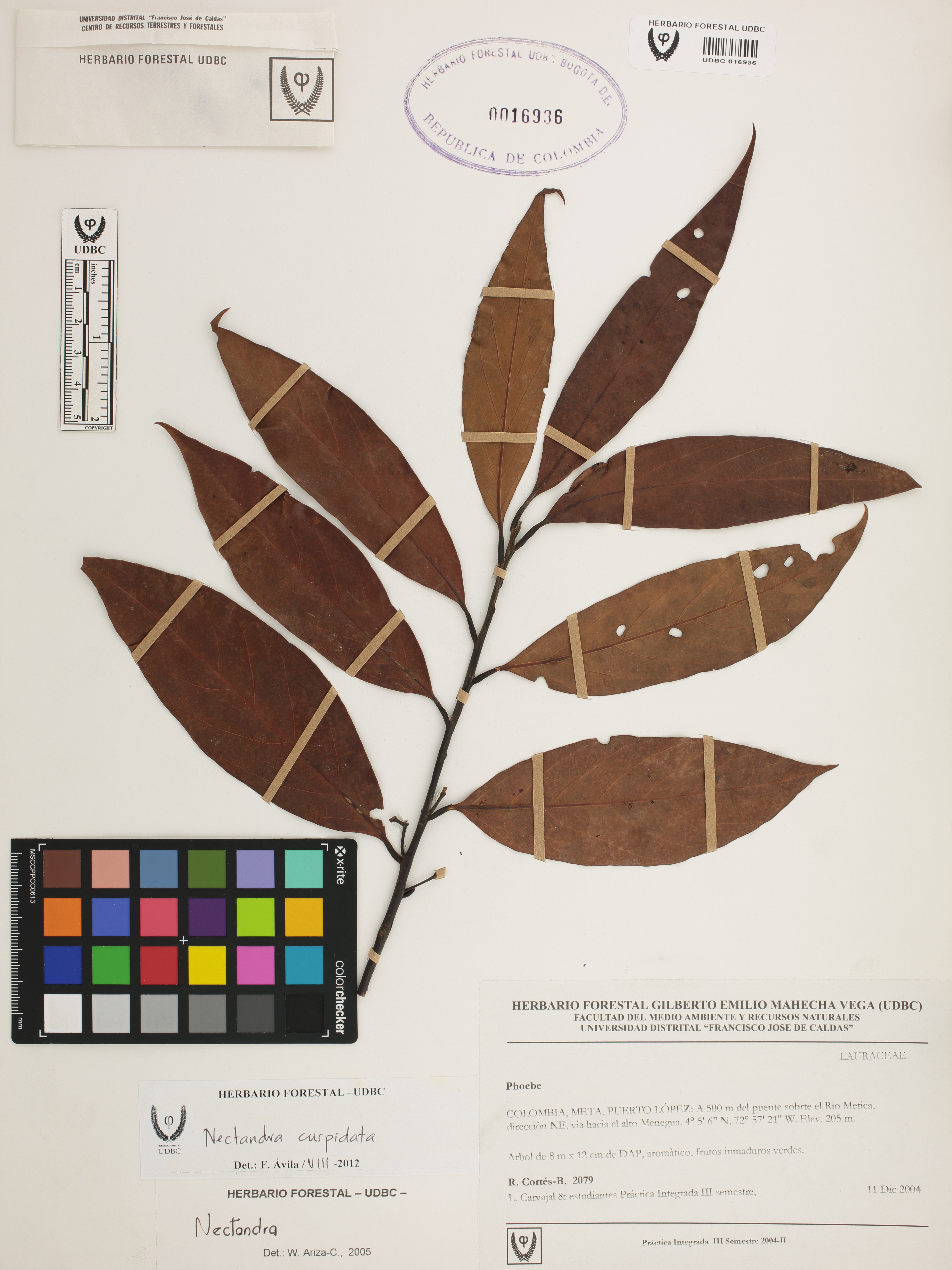 | dc.description | Fotografía del ejemplar Cortés-B., R. 2079, determinado como Nectandra cuspidata en el año 2012 | |
