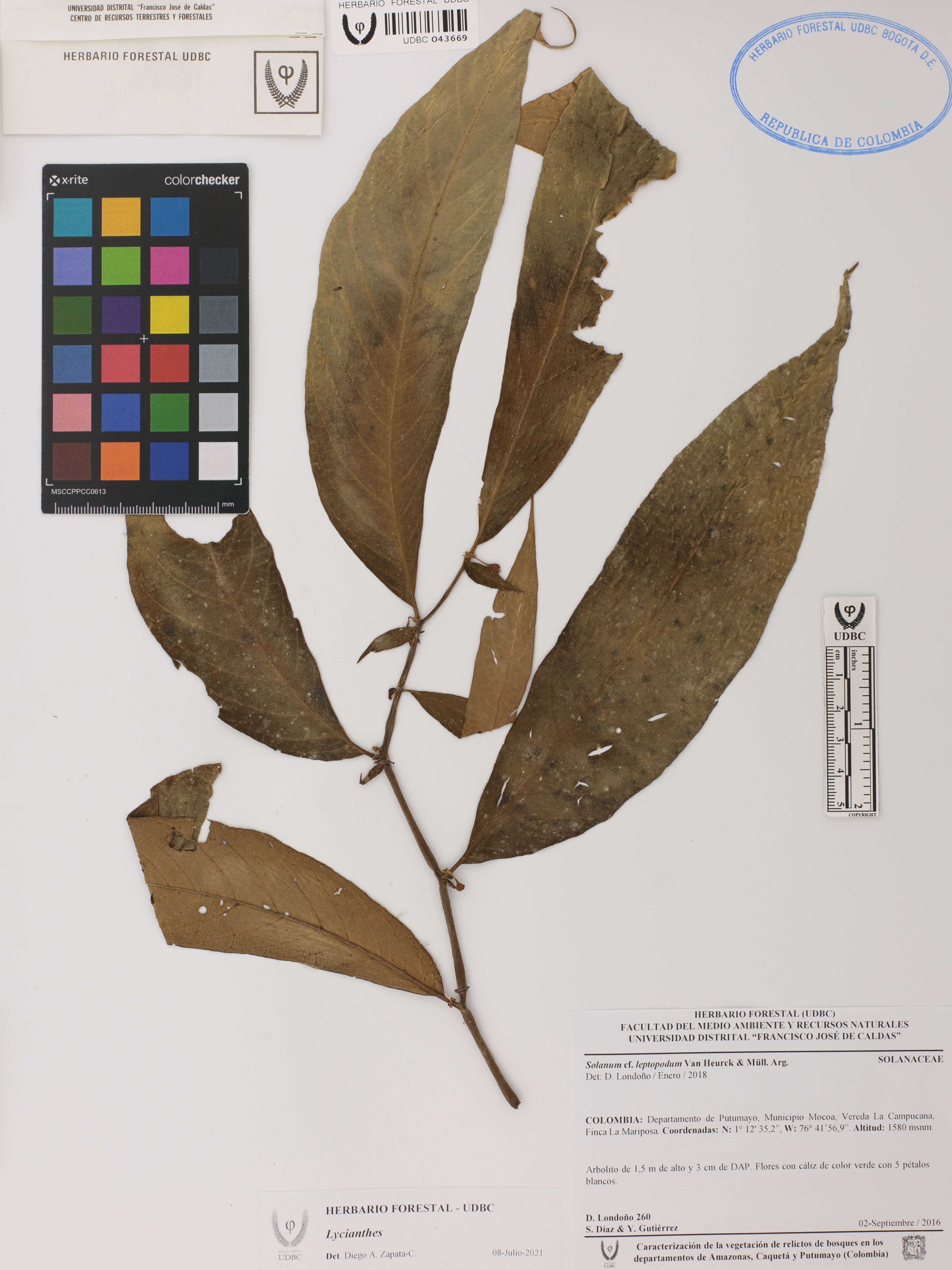 Fotografía del ejemplar Londoño, D. 260, determinado como Lycianthes sp. en el año 2021