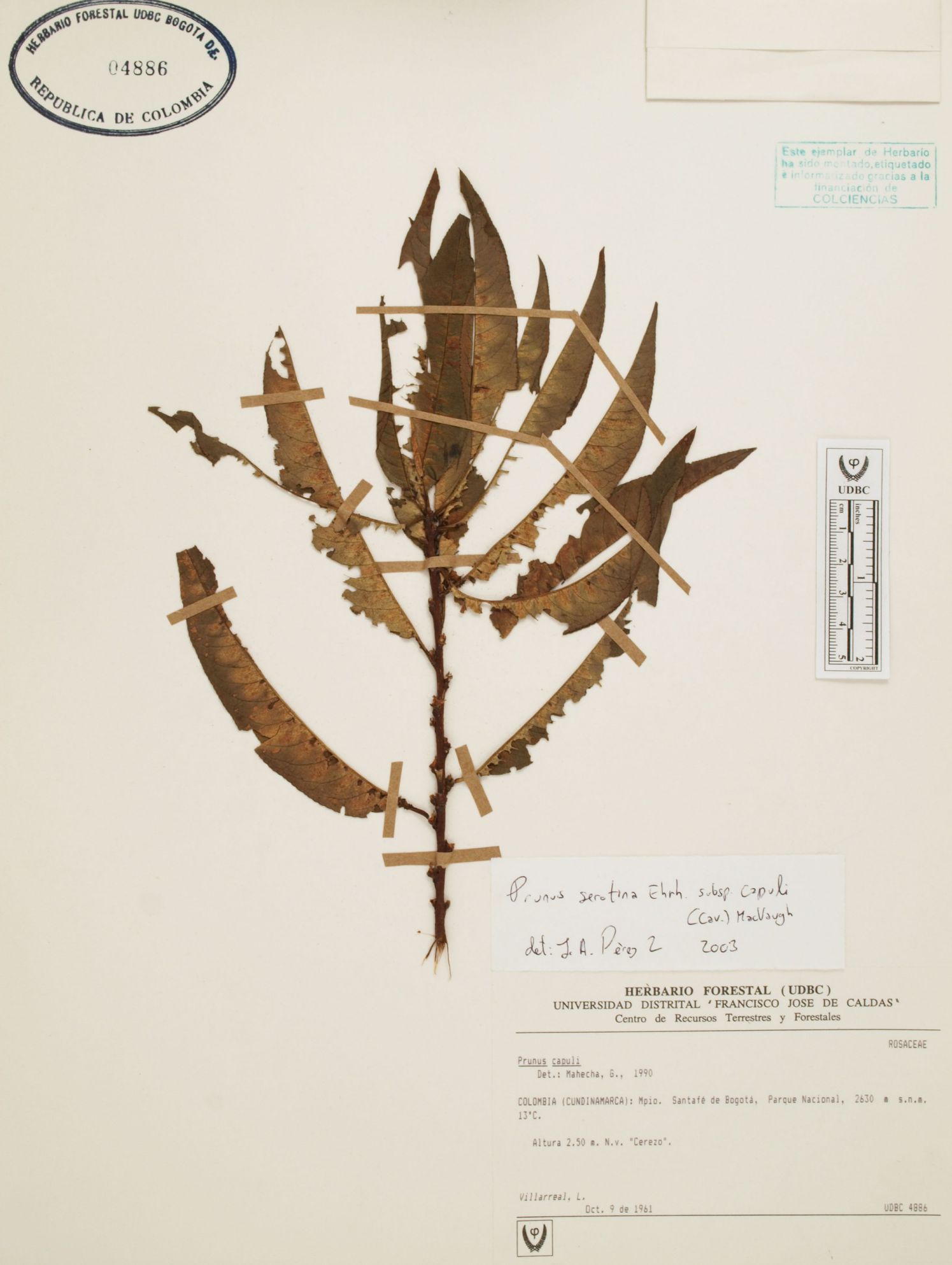 Fotografía del ejemplar Villarreal, L., determinado como Prunus serotina subsp. capuli en el año 2003