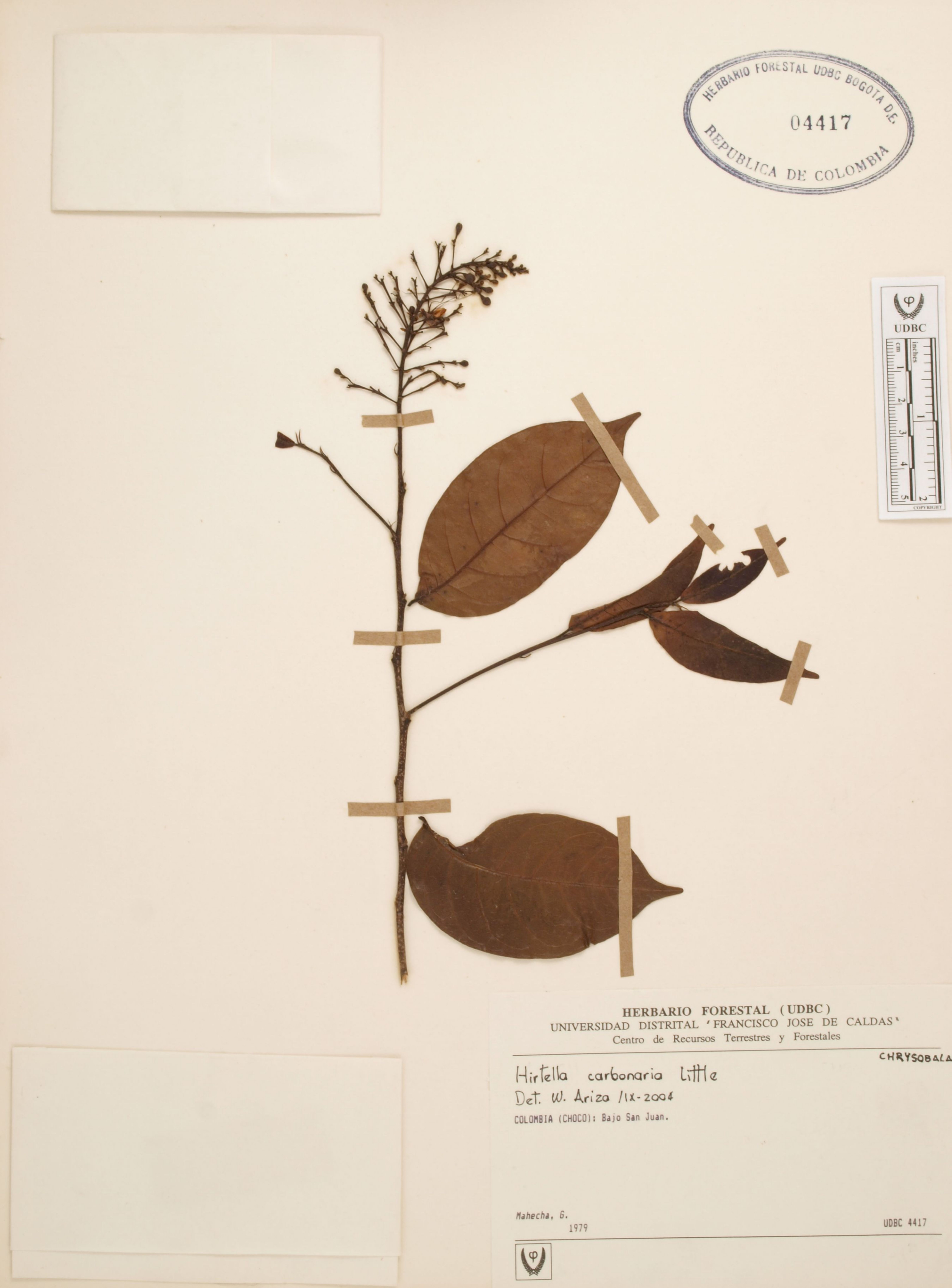 Fotografía del ejemplar Mahecha, G., determinado como Hirtella carbonaria