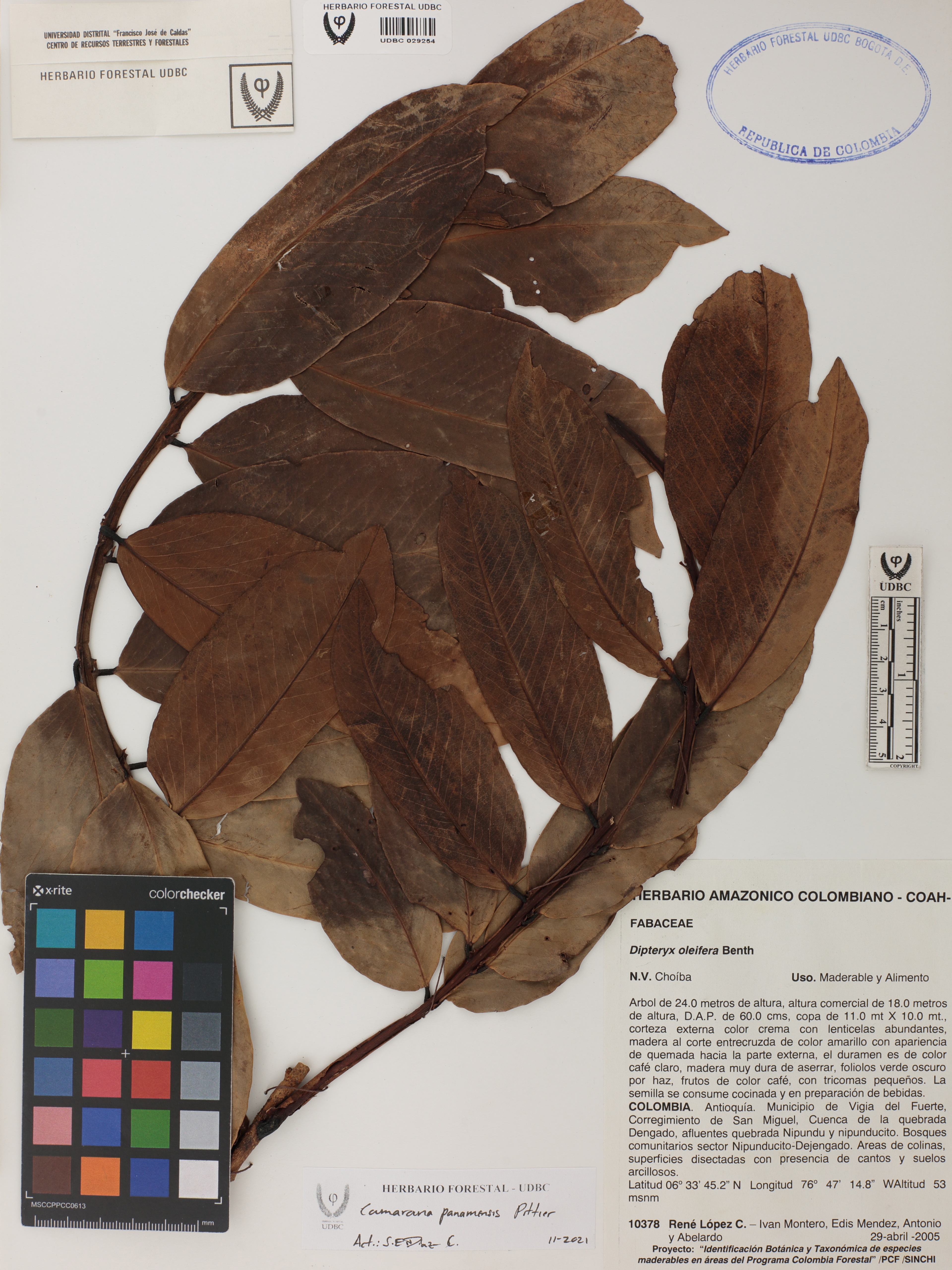 Fotografía del ejemplar López, R. 10378, determinado como Coumarouna panamensis en el año 2005