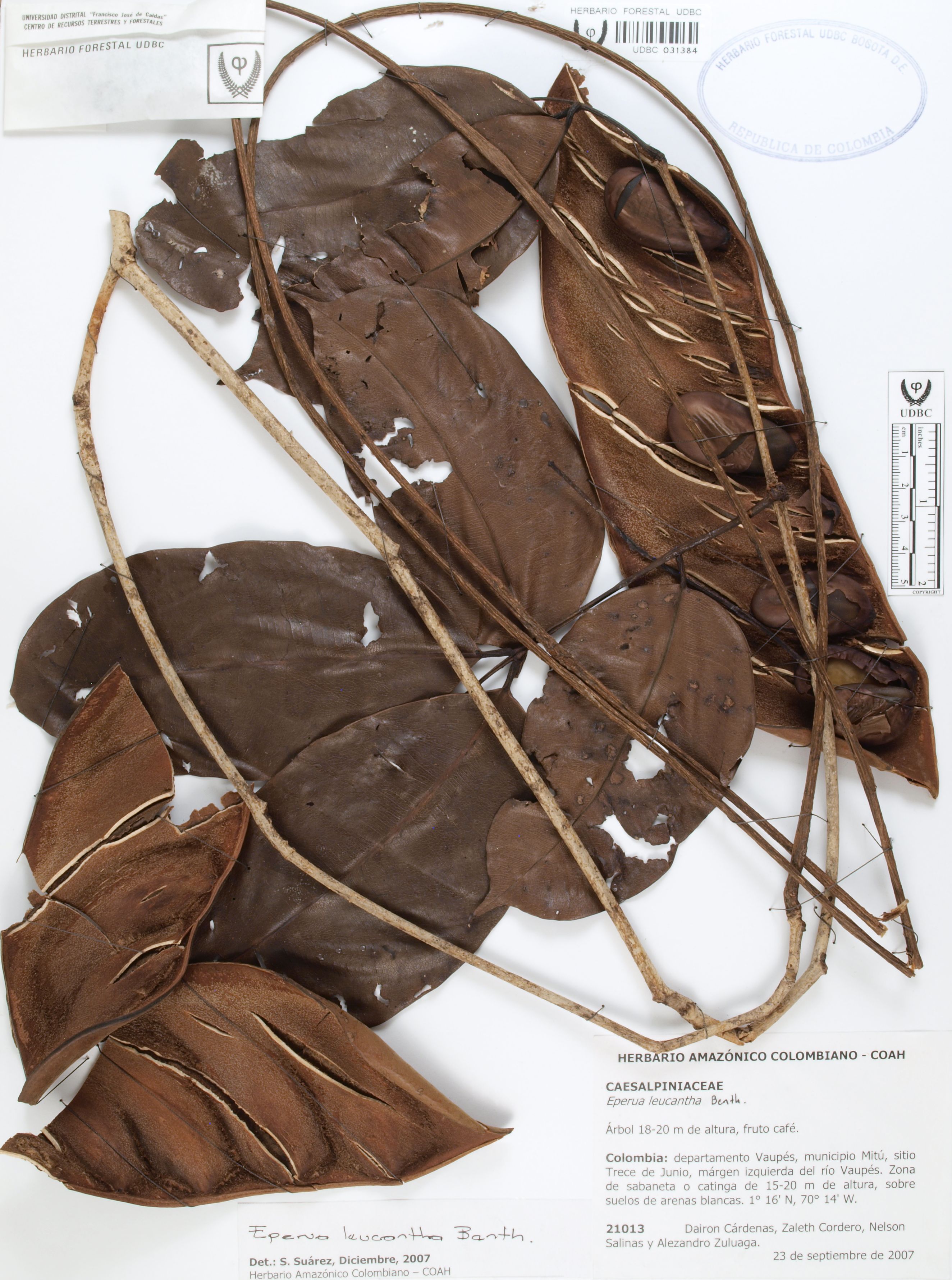 Fotografía del ejemplar Cárdenas, D. 21013, determinado como Eperua leucantha en el año 2007