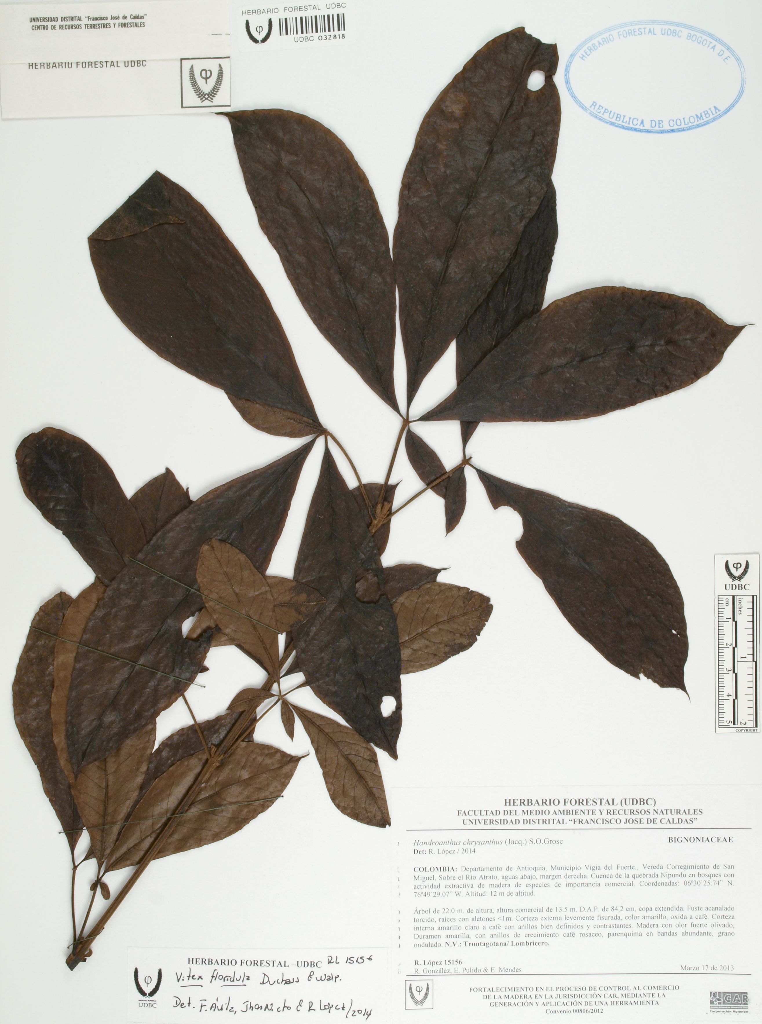 Fotografía del ejemplar López, R. 15156, determinado como Vitex floridula en el año 2014