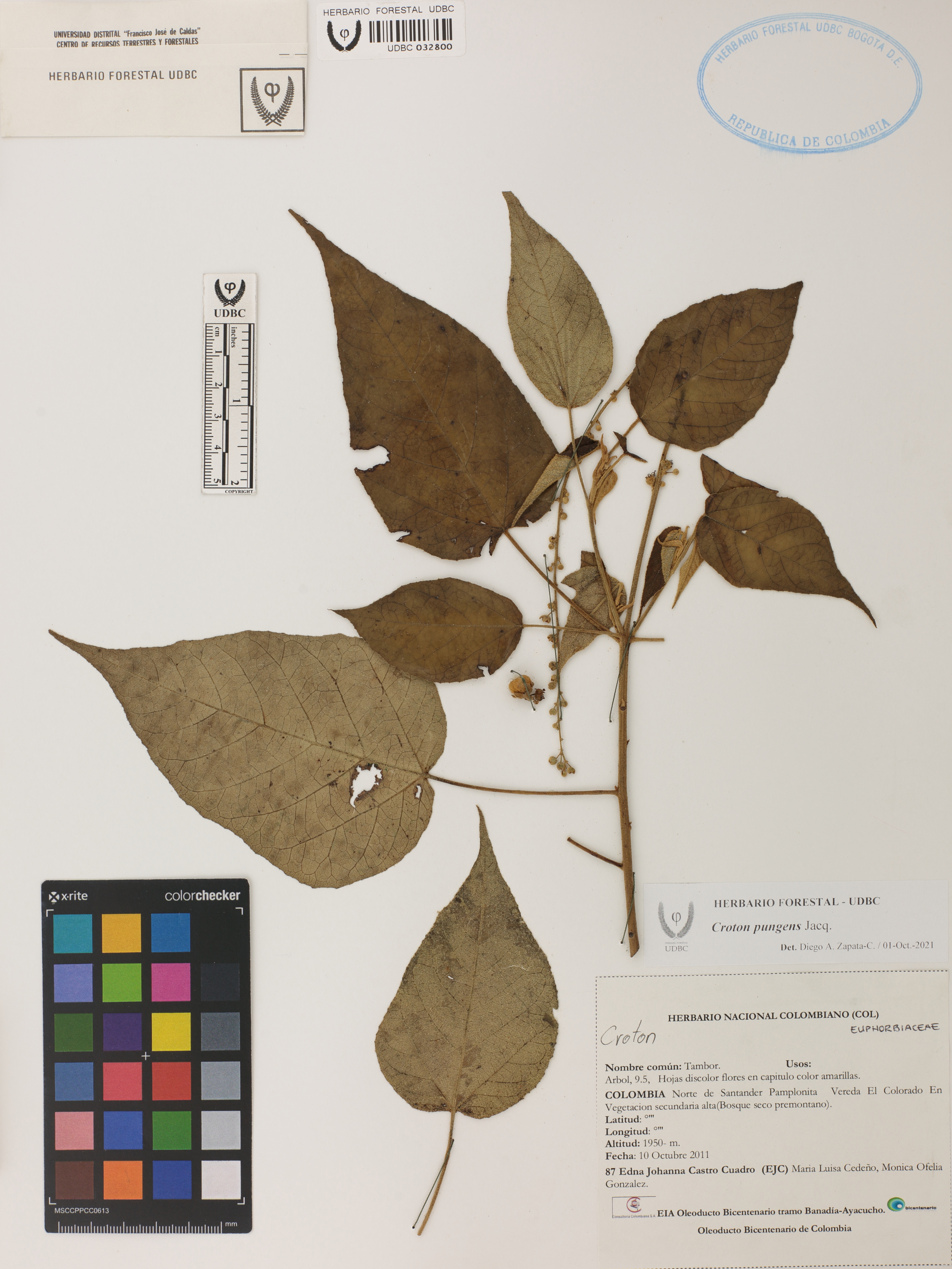 Fotografía del ejemplar Castro, E. 87, determinado como Croton pungens en el año 2021