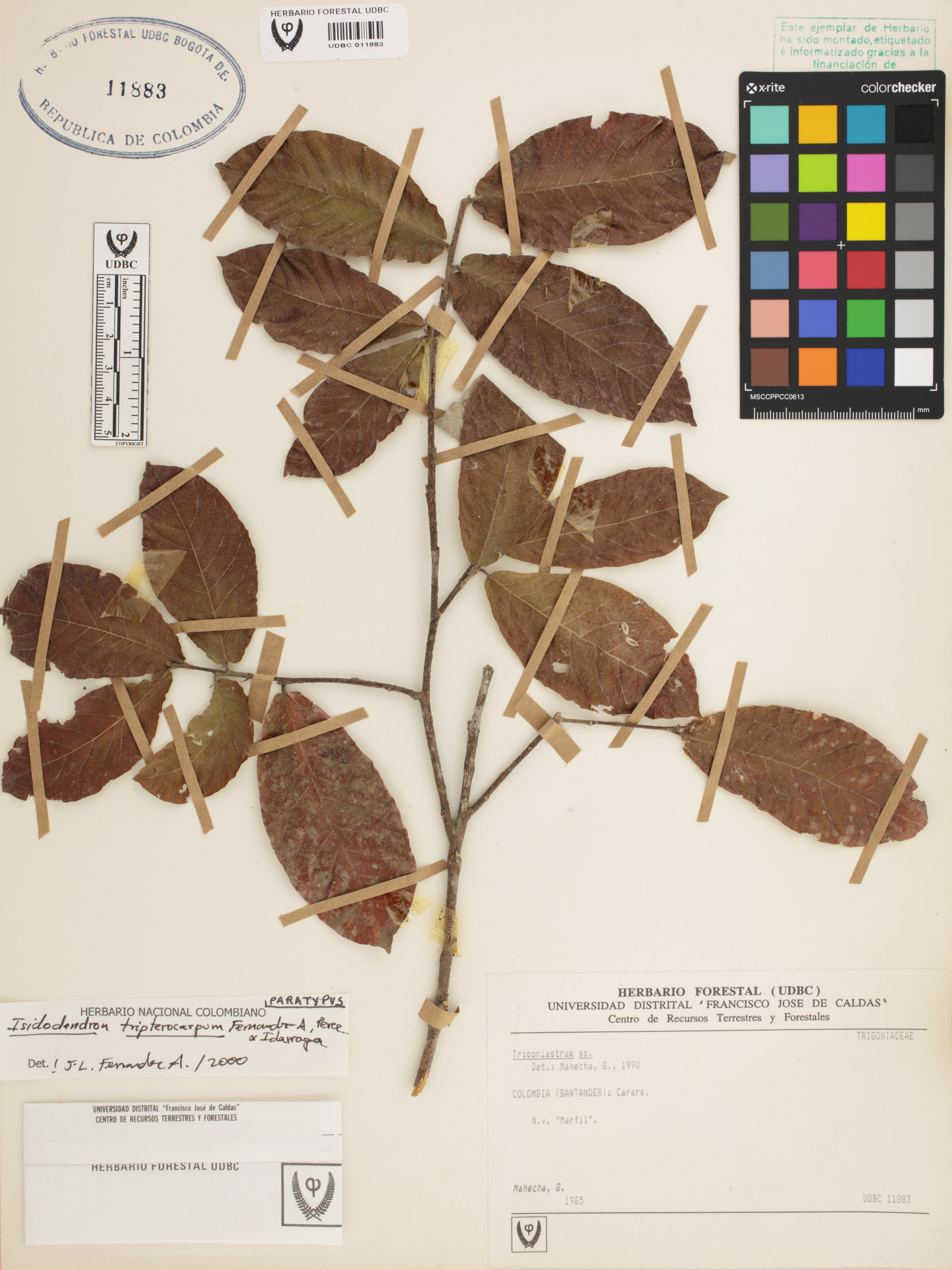 | dc.description | Fotografía del ejemplar Mahecha, G., Paratipo de Isidodendron tripterocarpum | |