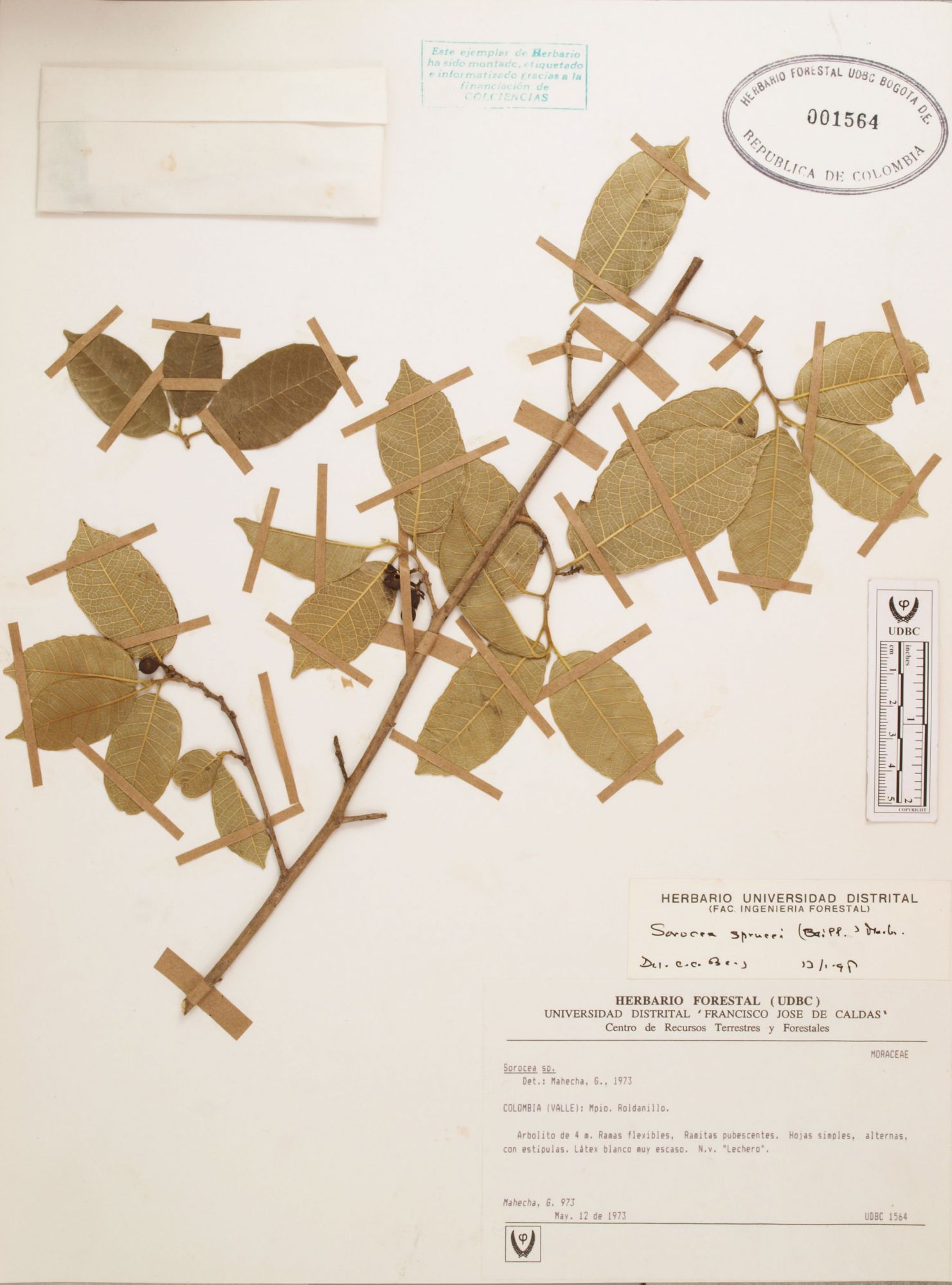 Fotografía del ejemplar Mahecha, G. 973, determinado como Sorocea sprucei en el año 1997
