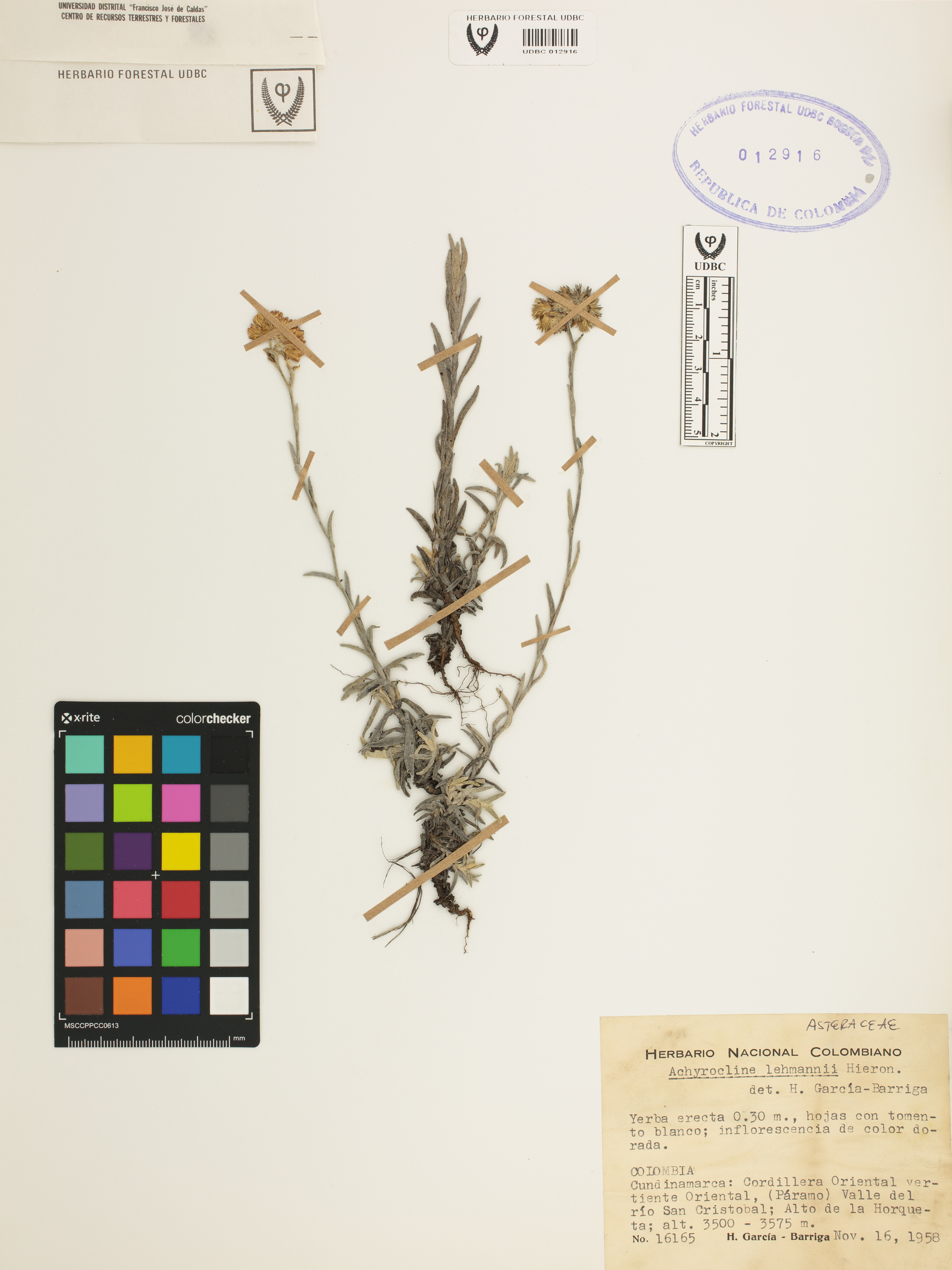 Fotografía del ejemplar García-B., H. 16165, determinado como Achyrocline lehmannii