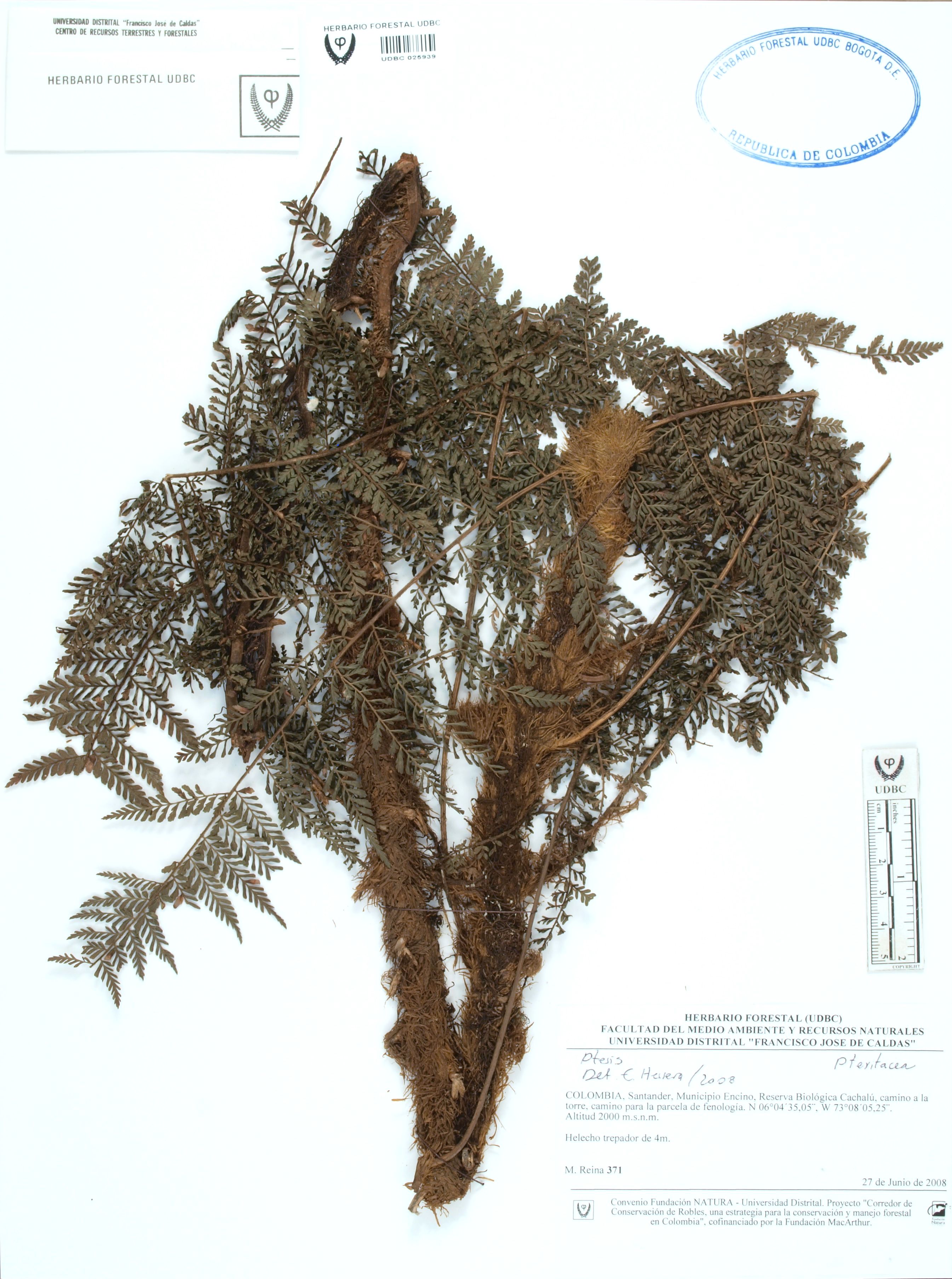Fotografía del ejemplar Reina, M. 371, determinado como Pteris sp. en el año 2008