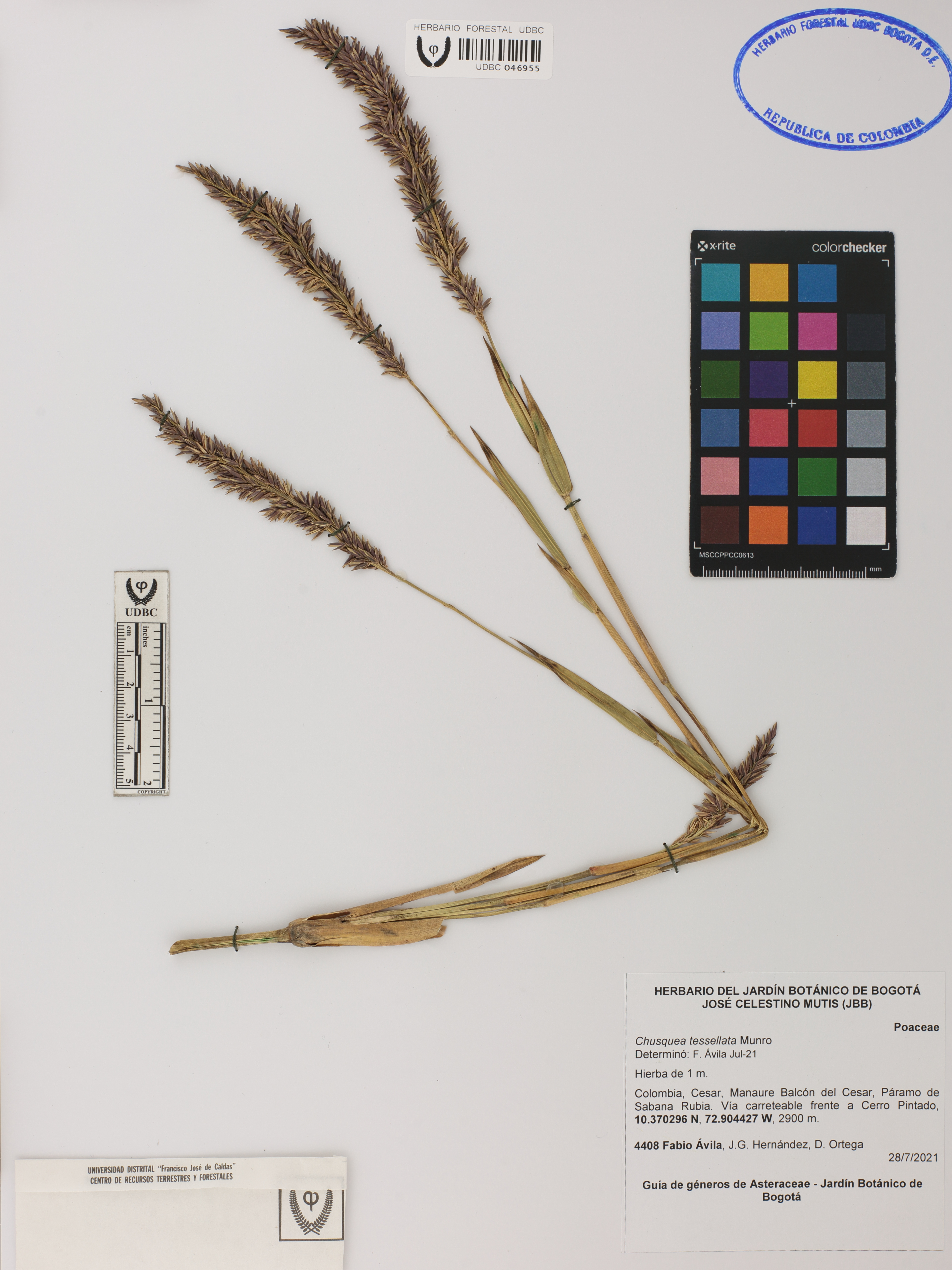Fotografía del ejemplar Ávila, F. 4408, determinado como Chusquea tessellata en el año 2021