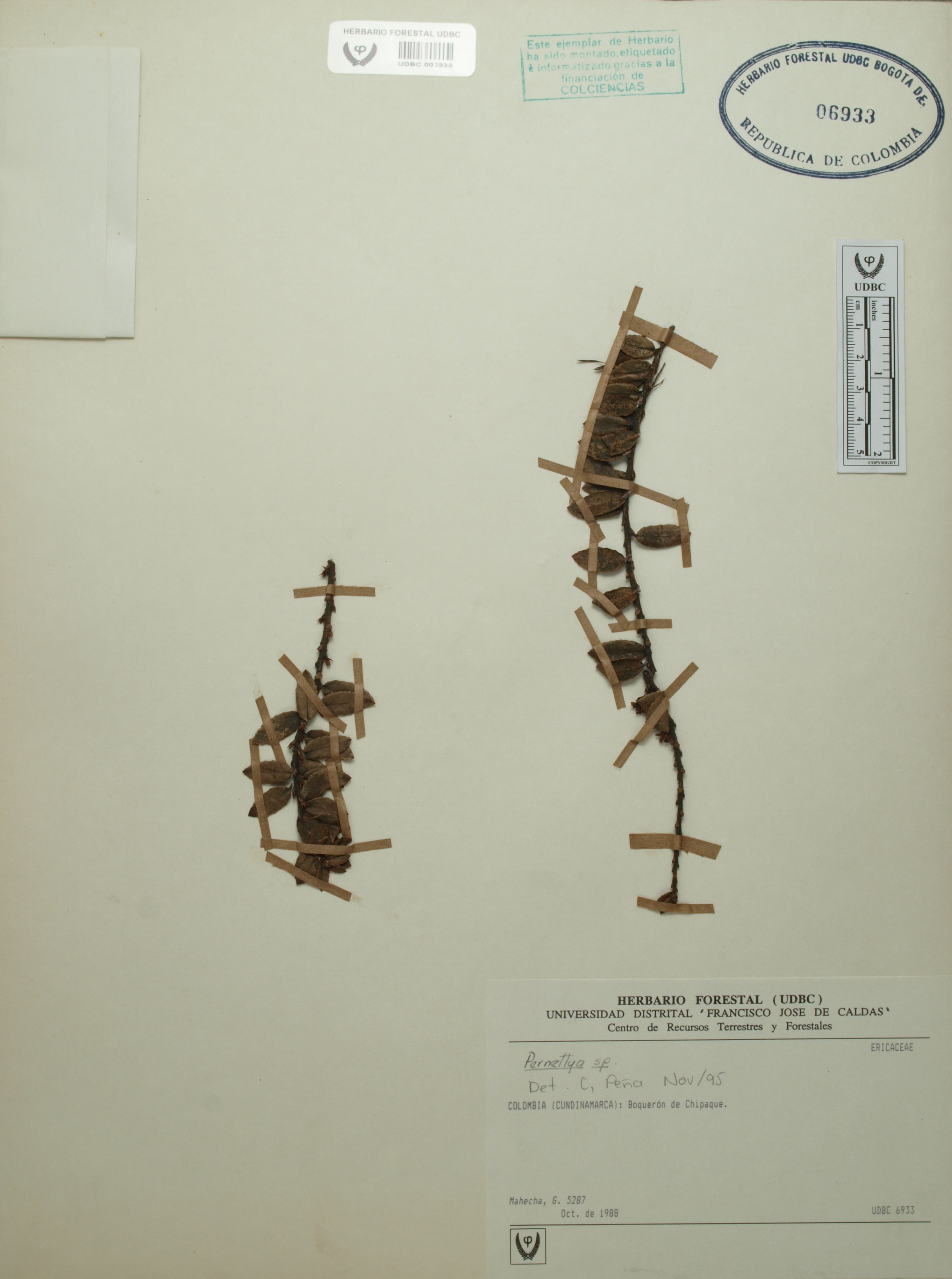 Fotografía del ejemplar Mahecha, G. 5287, determinado como Pernettya sp. en el año 1995