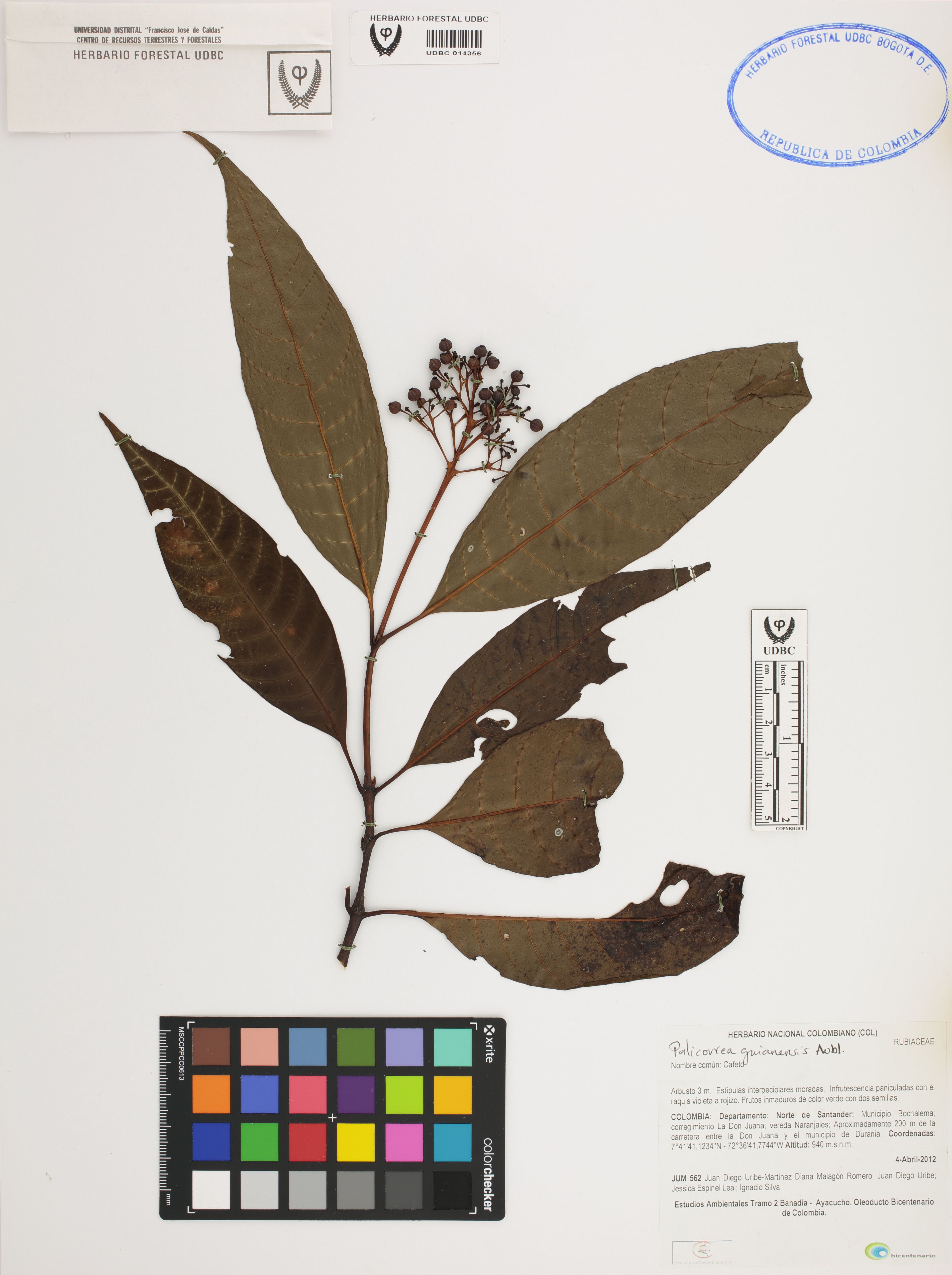Fotografía del ejemplar Uribe-M., J. 562, determinado como Palicourea guianensis