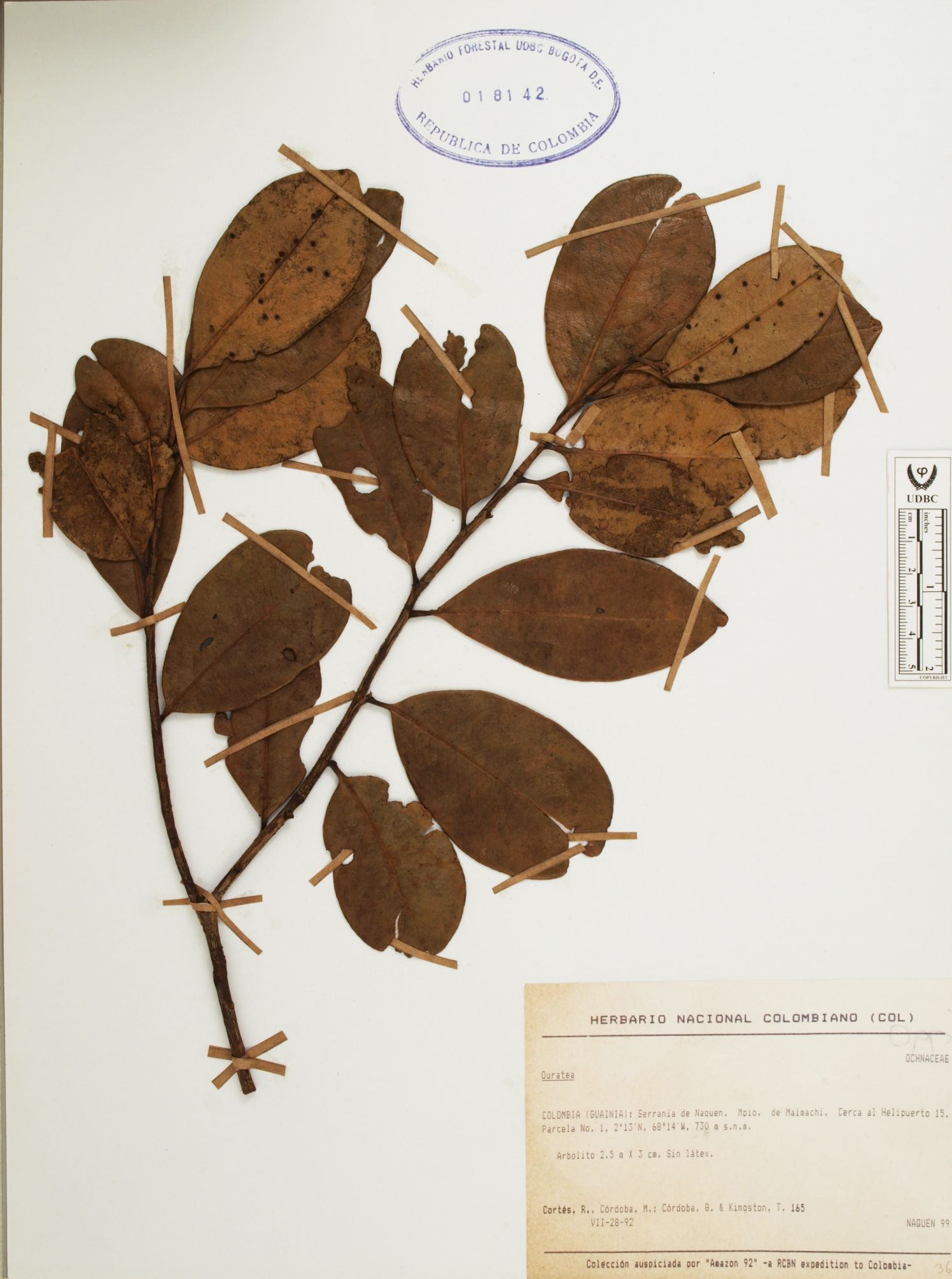 Fotografía del ejemplar Cortés-B., R. 99, determinado como Ouratea sp.