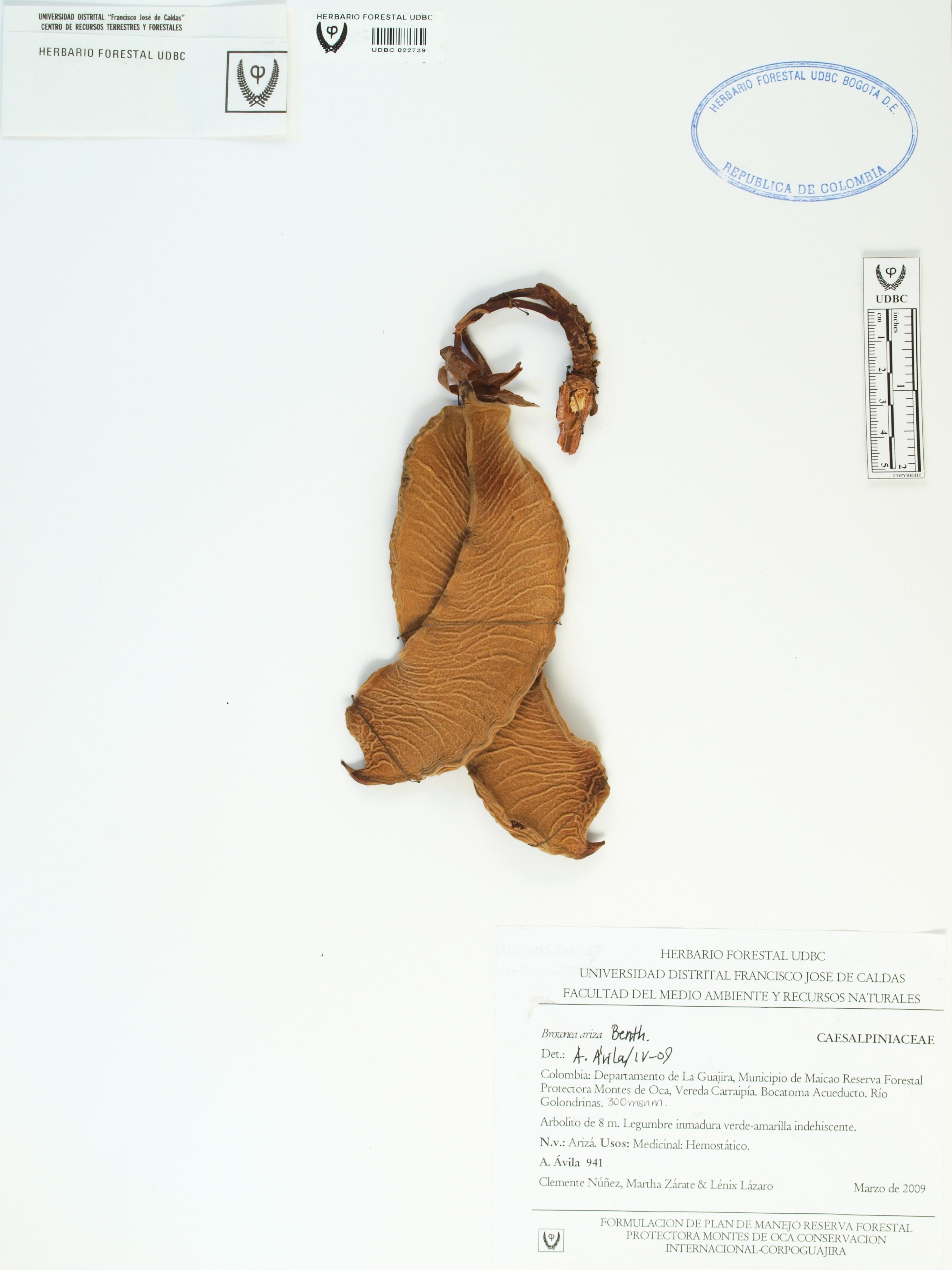 Fotografía del ejemplar Ávila, F. 941, determinado como Brownea grandiceps en el año 2009