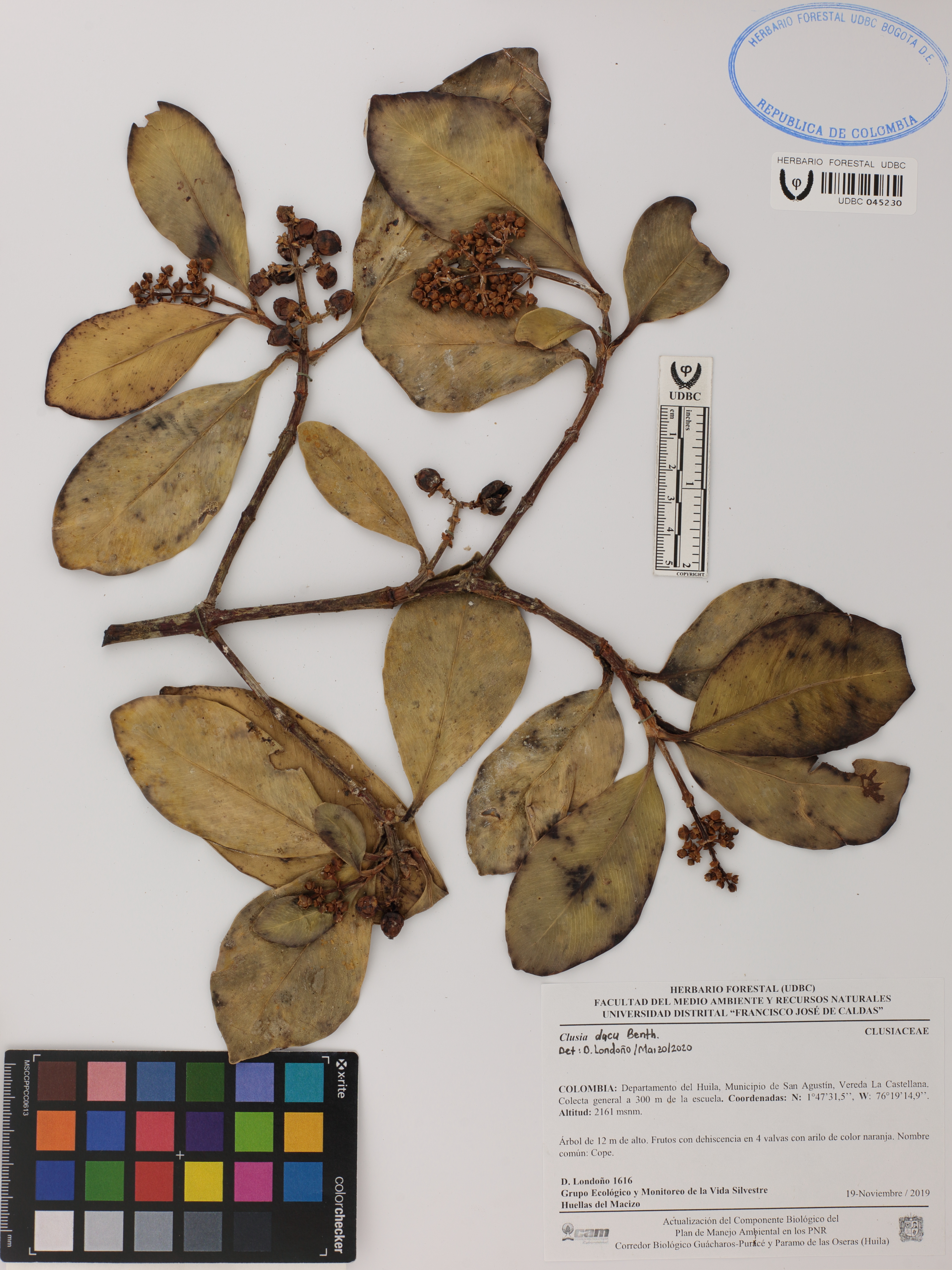 Fotografía del ejemplar Londoño, D. 1616, determinado como Clusia ducu en el año 2020
