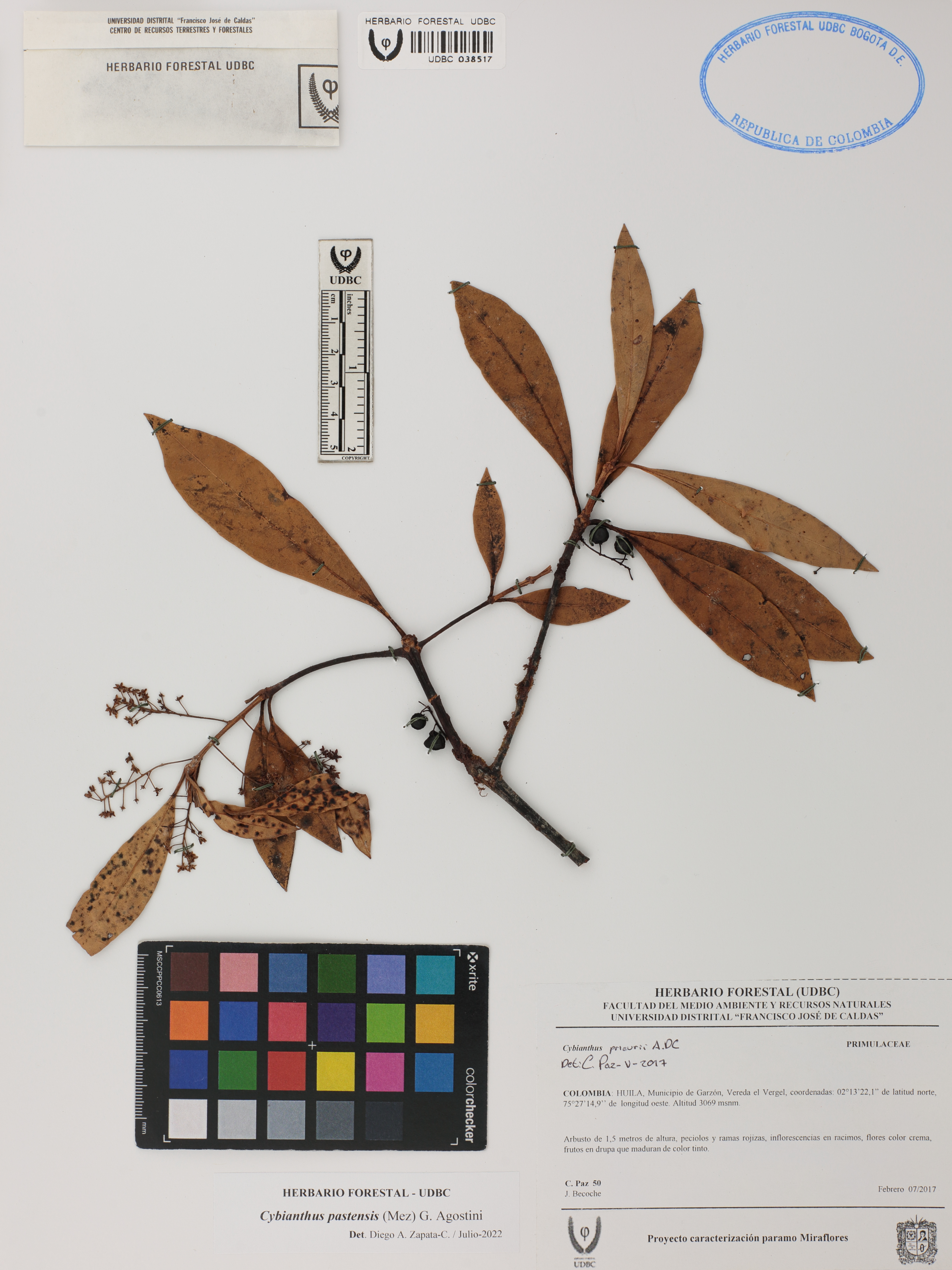 | dc.description | Fotografía del ejemplar Paz, C. 50, determinado como Cybianthus pastensis en el año 2022 | |