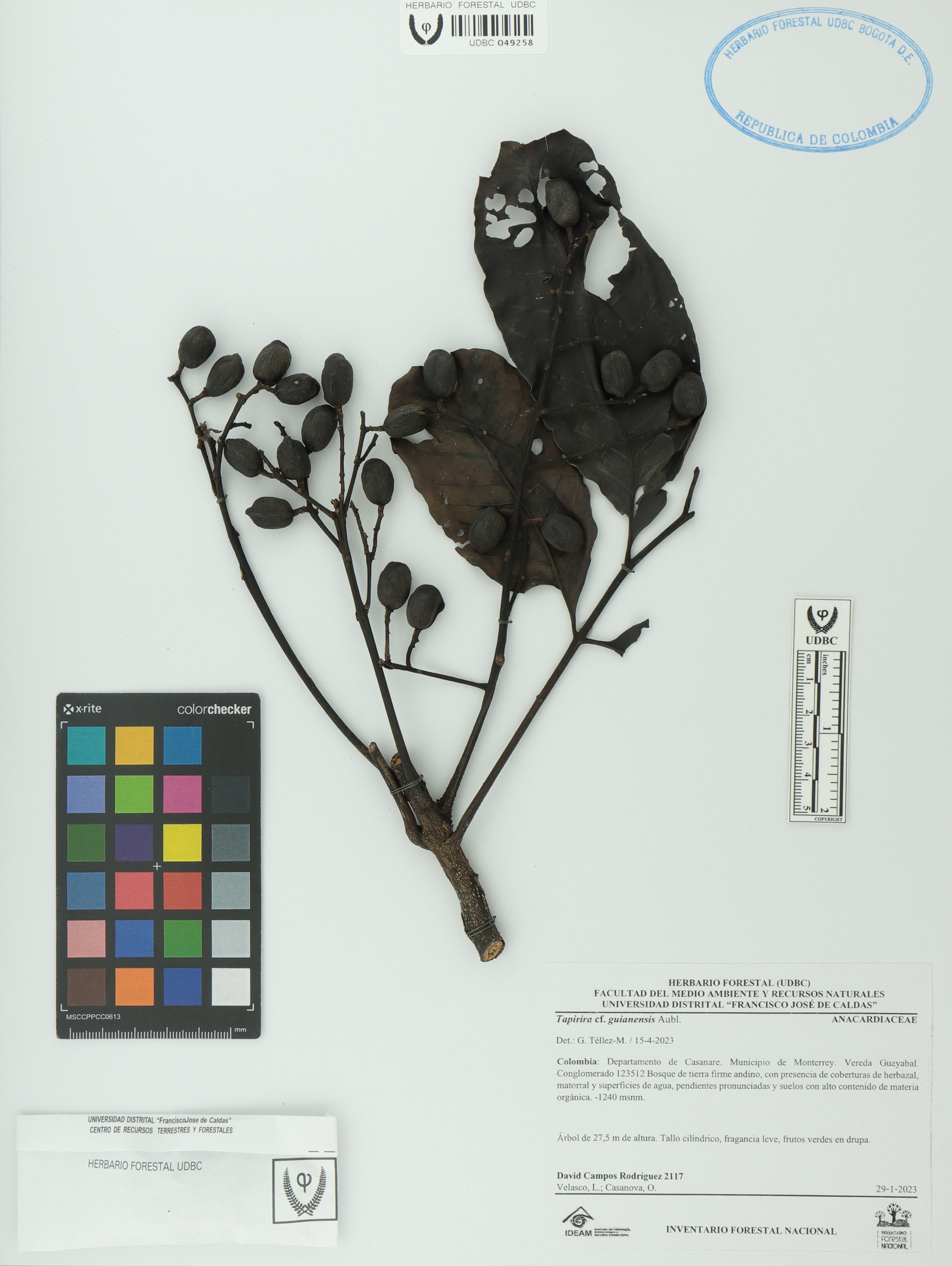Fotografía del ejemplar Campos-Rodríguez, D. 2117, determinado como Tapirira guianensis en el año 2023